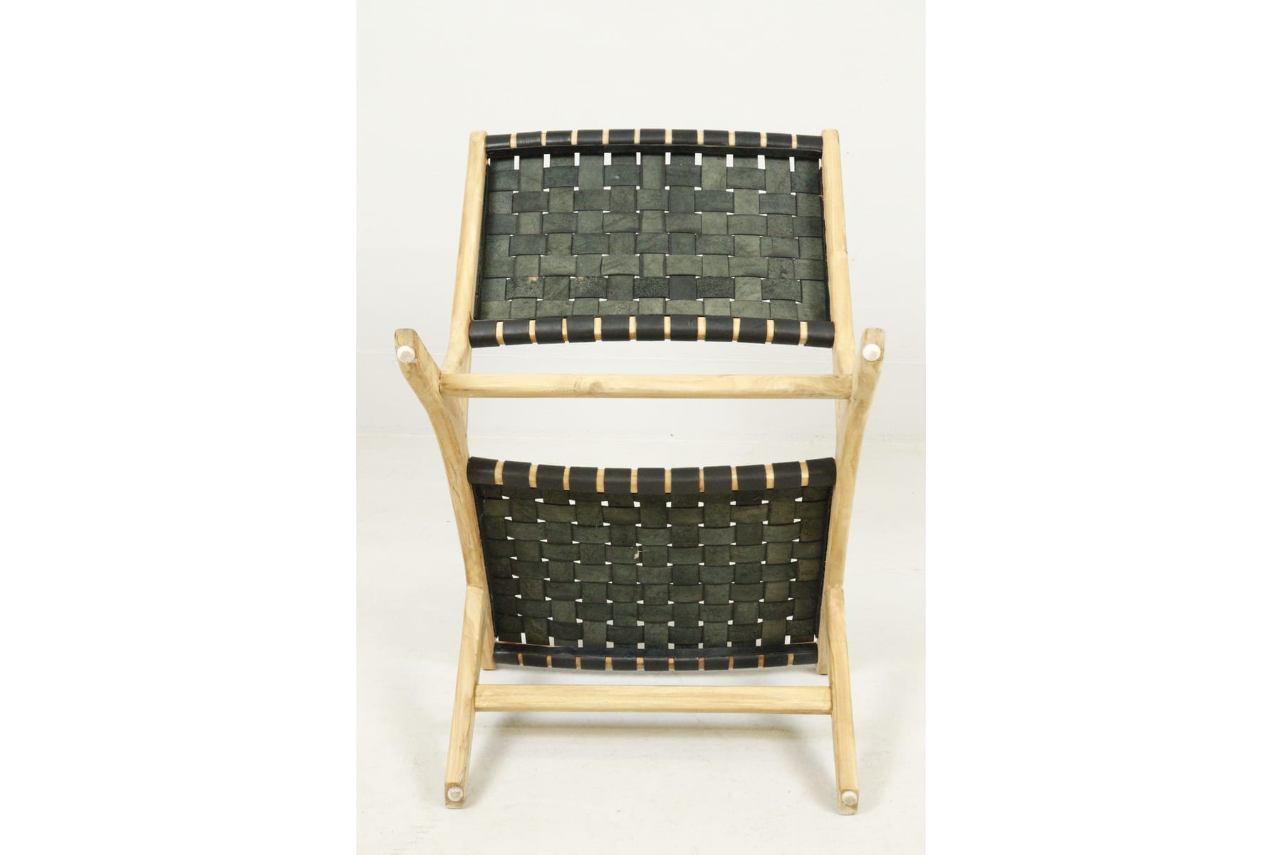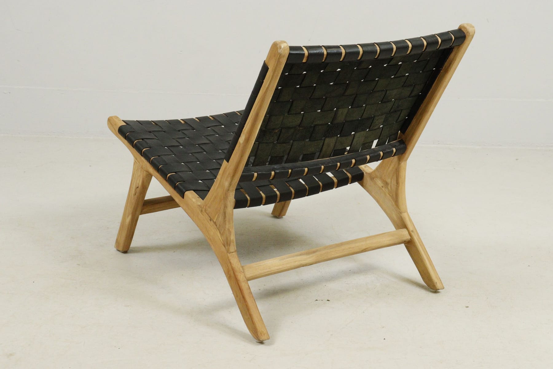 Fåtölj med flätad lädersits