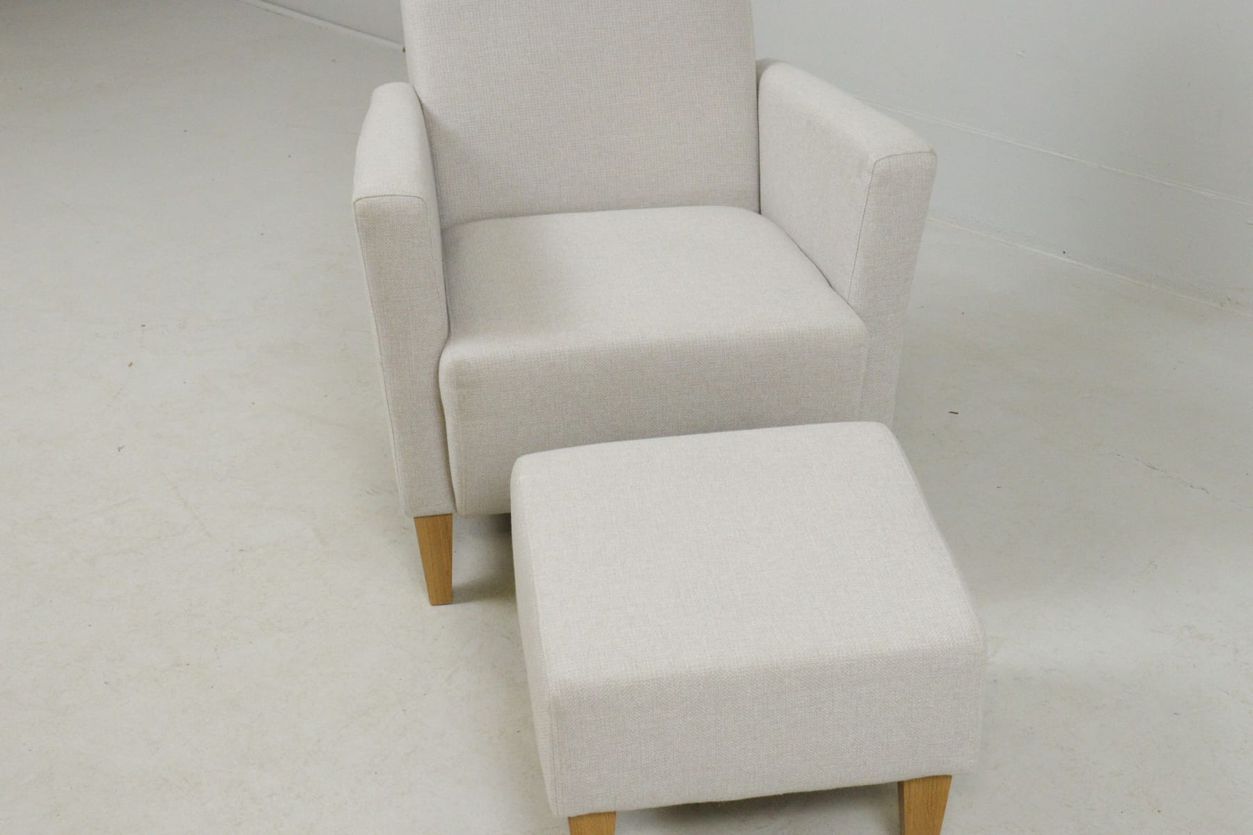 Fåtölj med fotpall, ljusgrått tyg, "Erik", Mio
