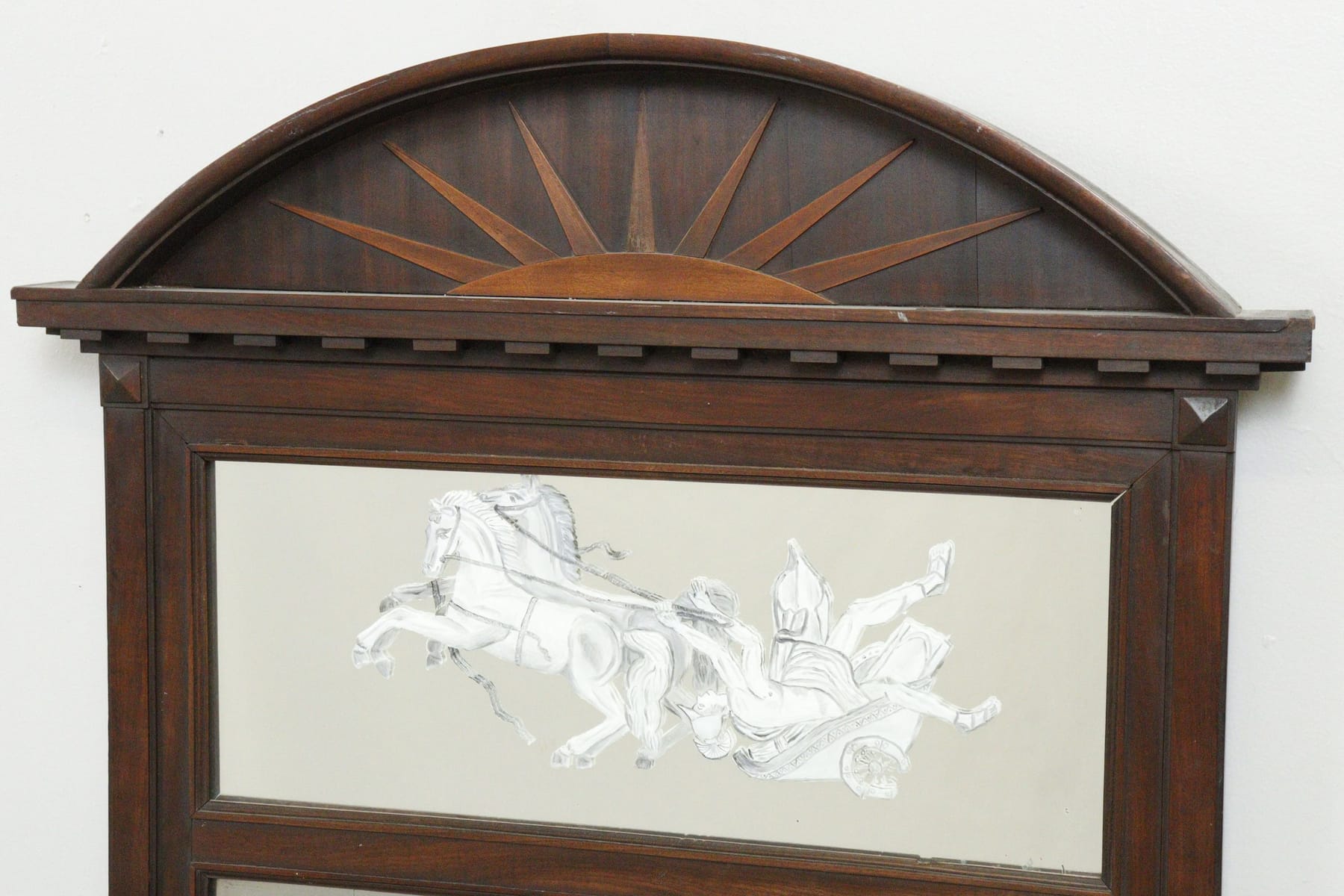Bilder Spegel med träram, krön med målat glas, 1800-tal