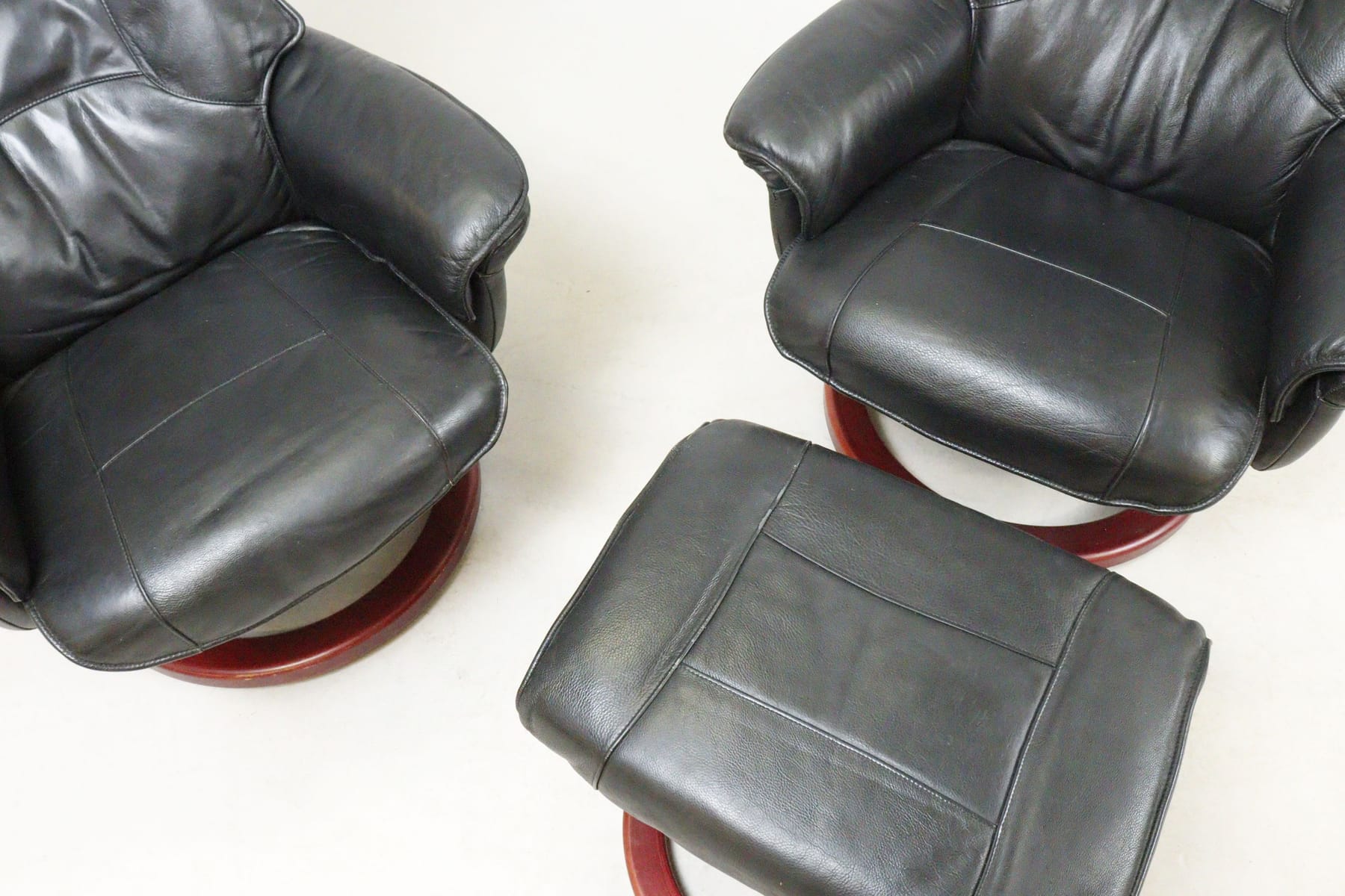 Fåtöljer, 2st, en med fotpall, Hjort Knudsen, snurr- och fällfunktion