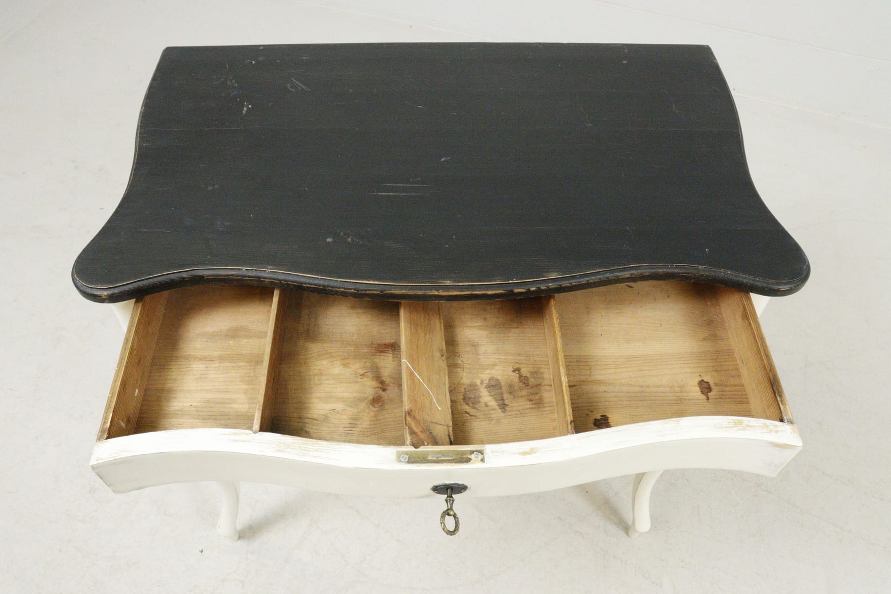 Väggbord med låda, svart med vitt stativ