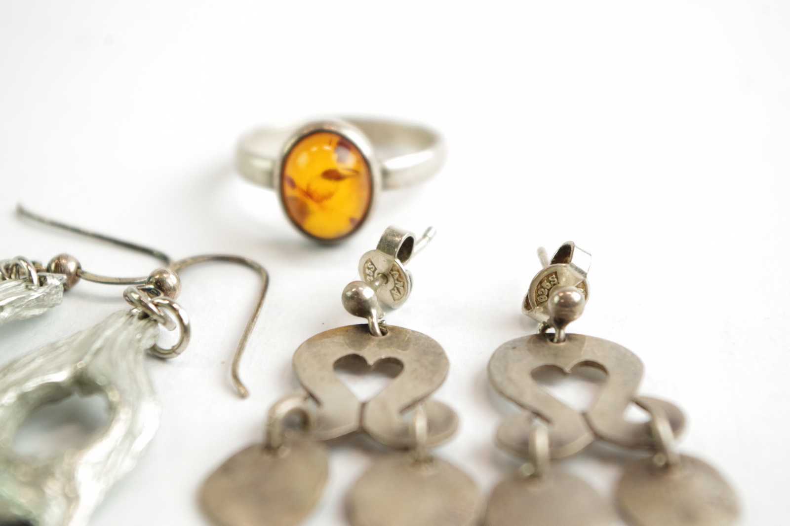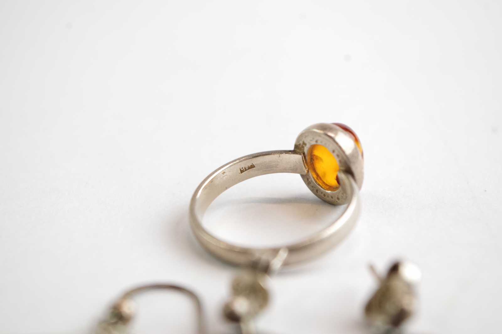 Bilder ÖRHÄNGEN silver & RING med bärnsten silver D:18 mm