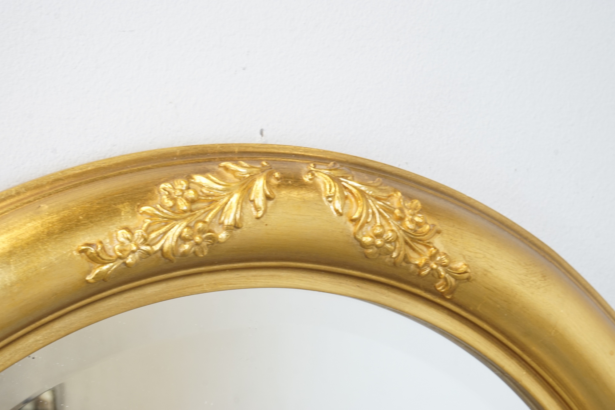 Guldfärgad väggspegel i barockstil.