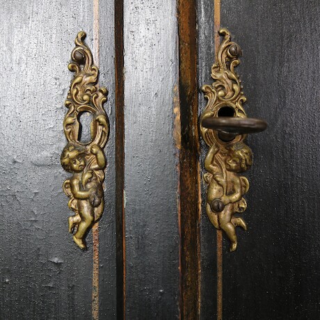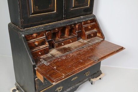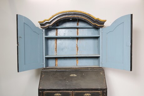 Bilder Snedklaffsekretär med överskåp barock 1700-talets mitt. 120x58 H=205