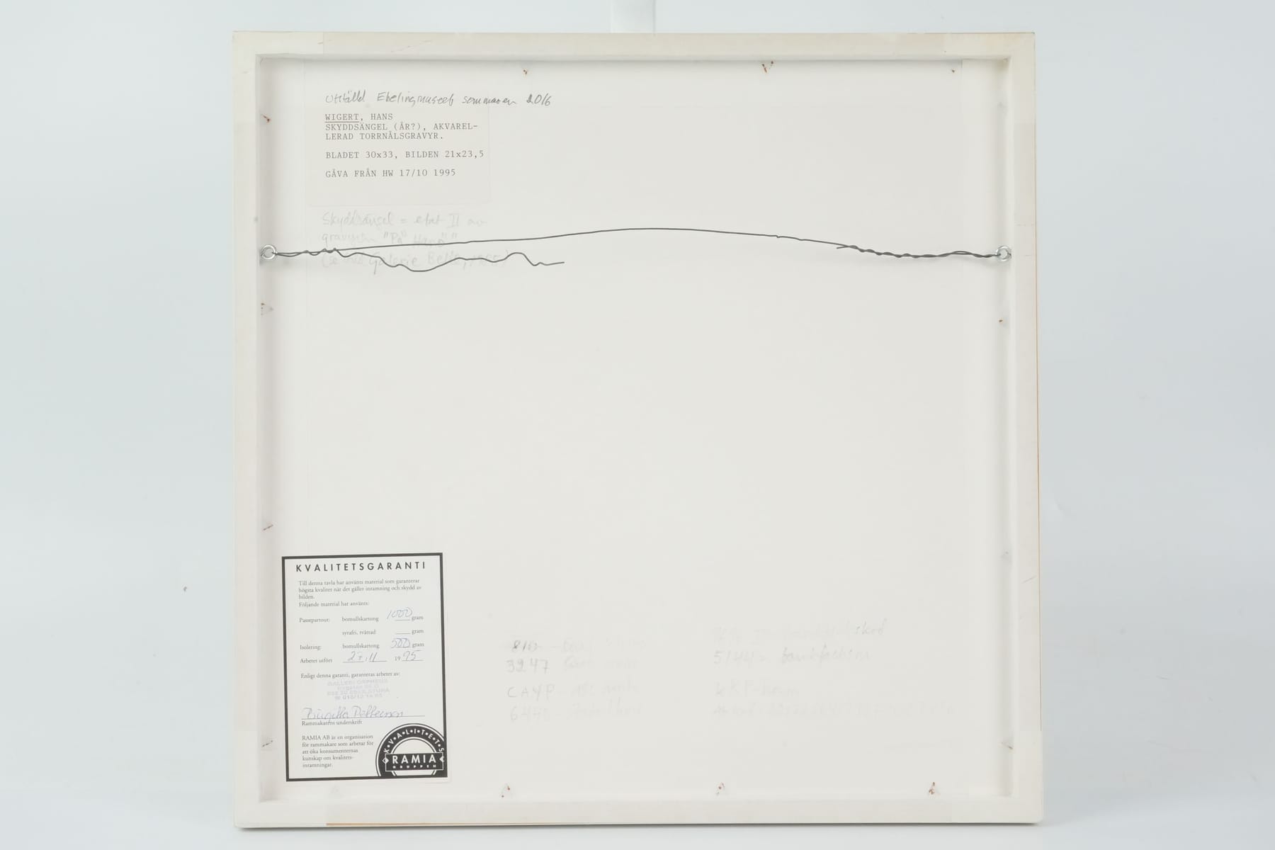 Bilder HANS WIGERT (1932-2015), akvarellerad torrnålsgravyr, "Skyddsängel"