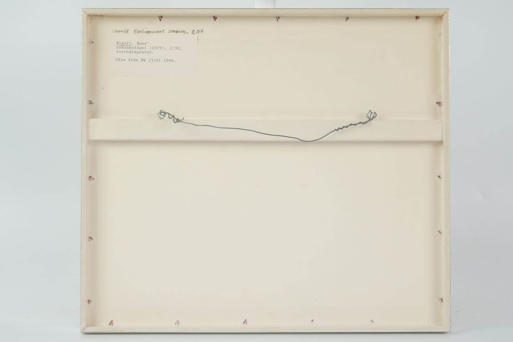 Bilder HANS WIGERT (1932-2015), torrnålsgravyr, "Leksaksfågel"