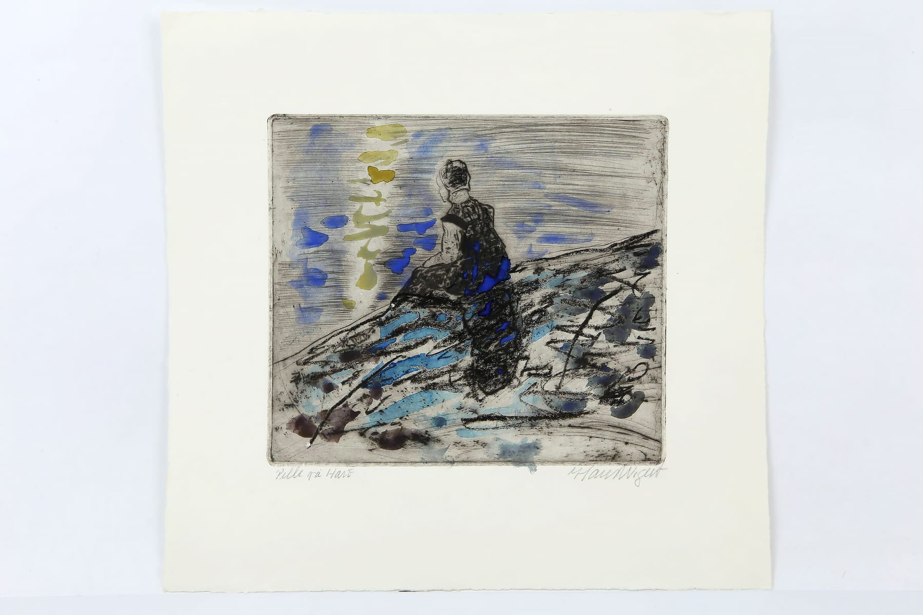 HANS WIGERT (1932-2015), akvarellerad torrnål, "Pelle på Harö", 1979