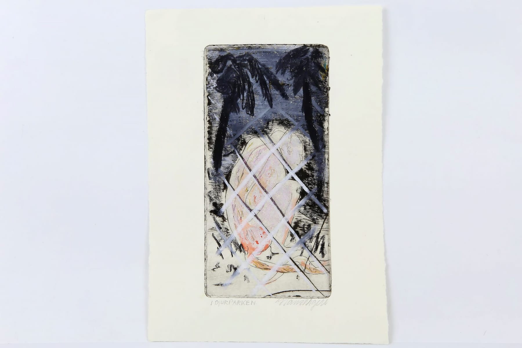 Bilder HANS WIGERT (1932-2015), kolorerad torrnålsgravyr, "I djurparken"