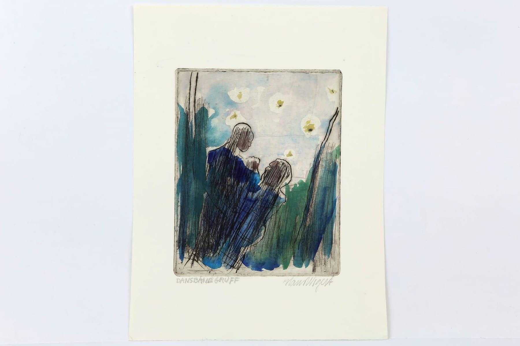 Bilder HANS WIGERT (1932-2015), akvarellerad torrnålsgravyr, "Dansbanegruff", 1991