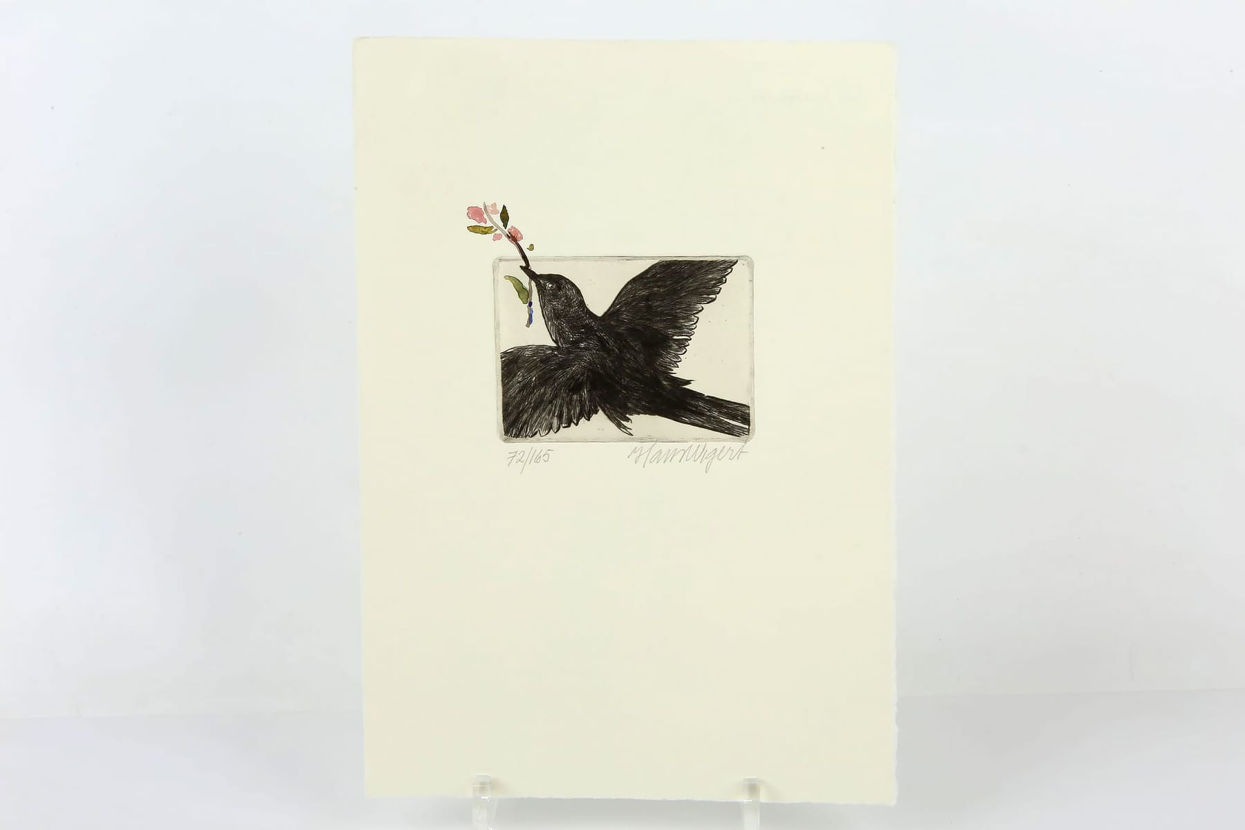 Bilder HANS WIGERT (1932-2015), akvarellerad torrnålsgravyr, "Fågeln"
