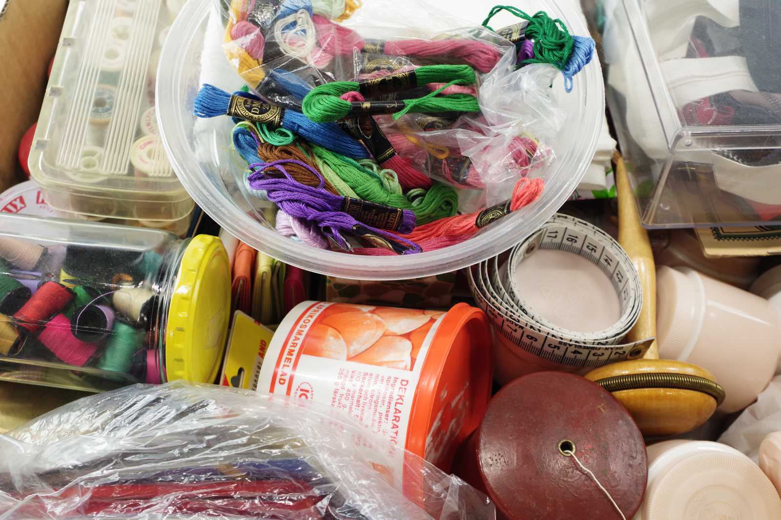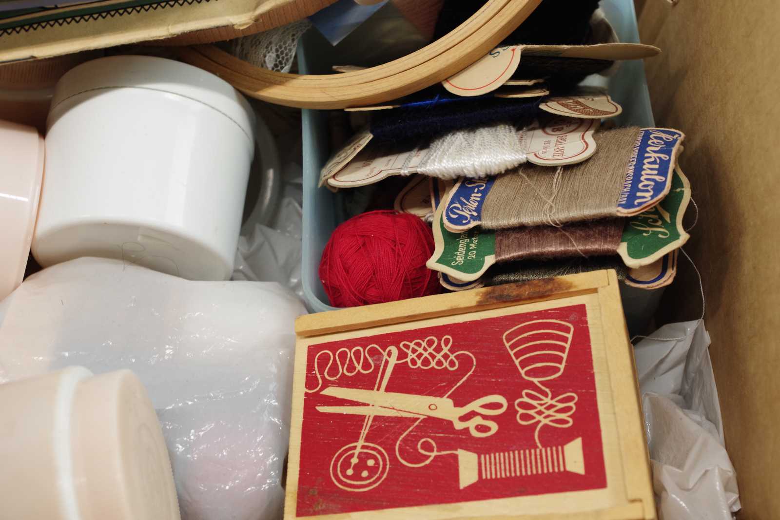 Bilder parti SYTILLBEHÖR tråd, knappar, blixtlås, broderiringar mm