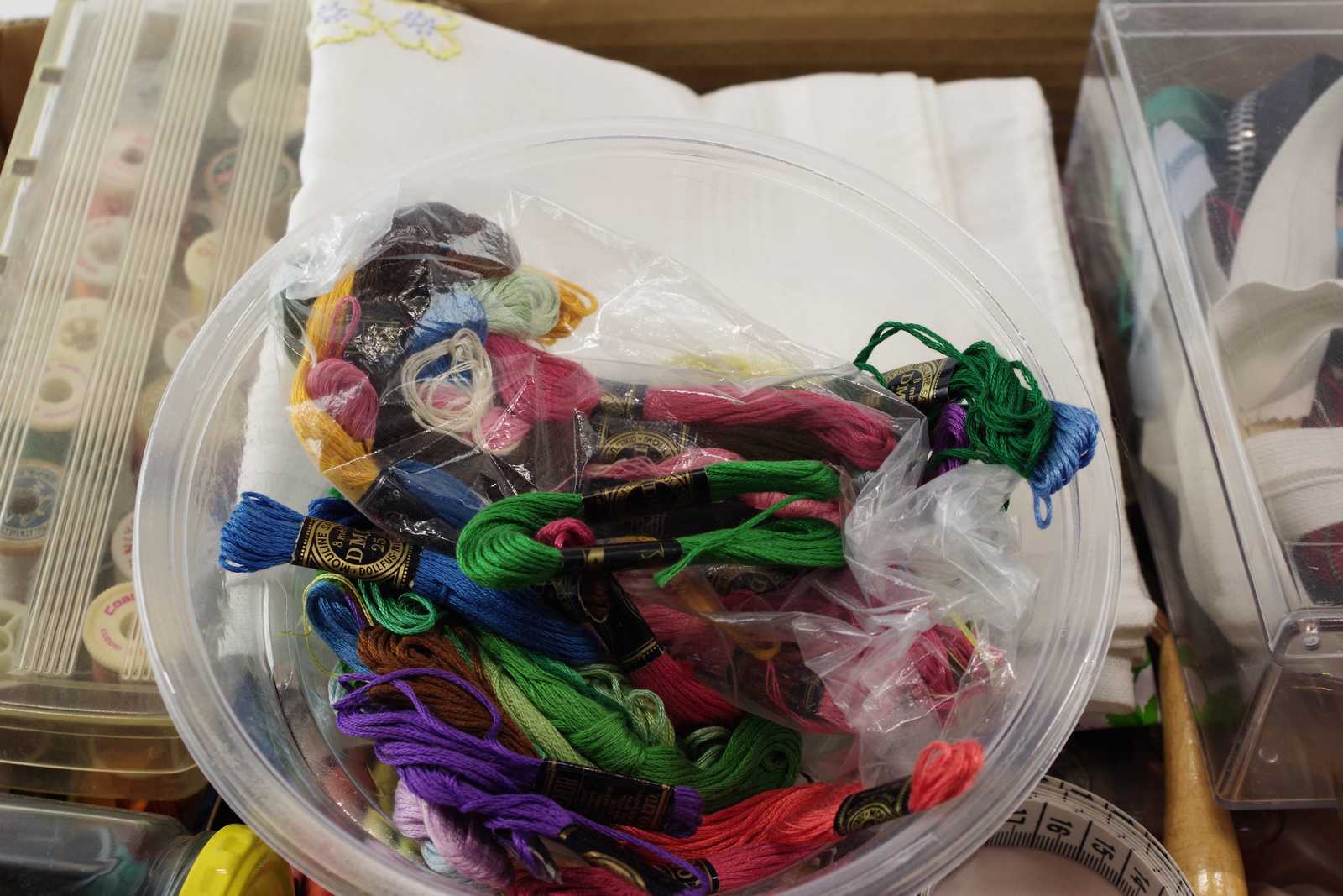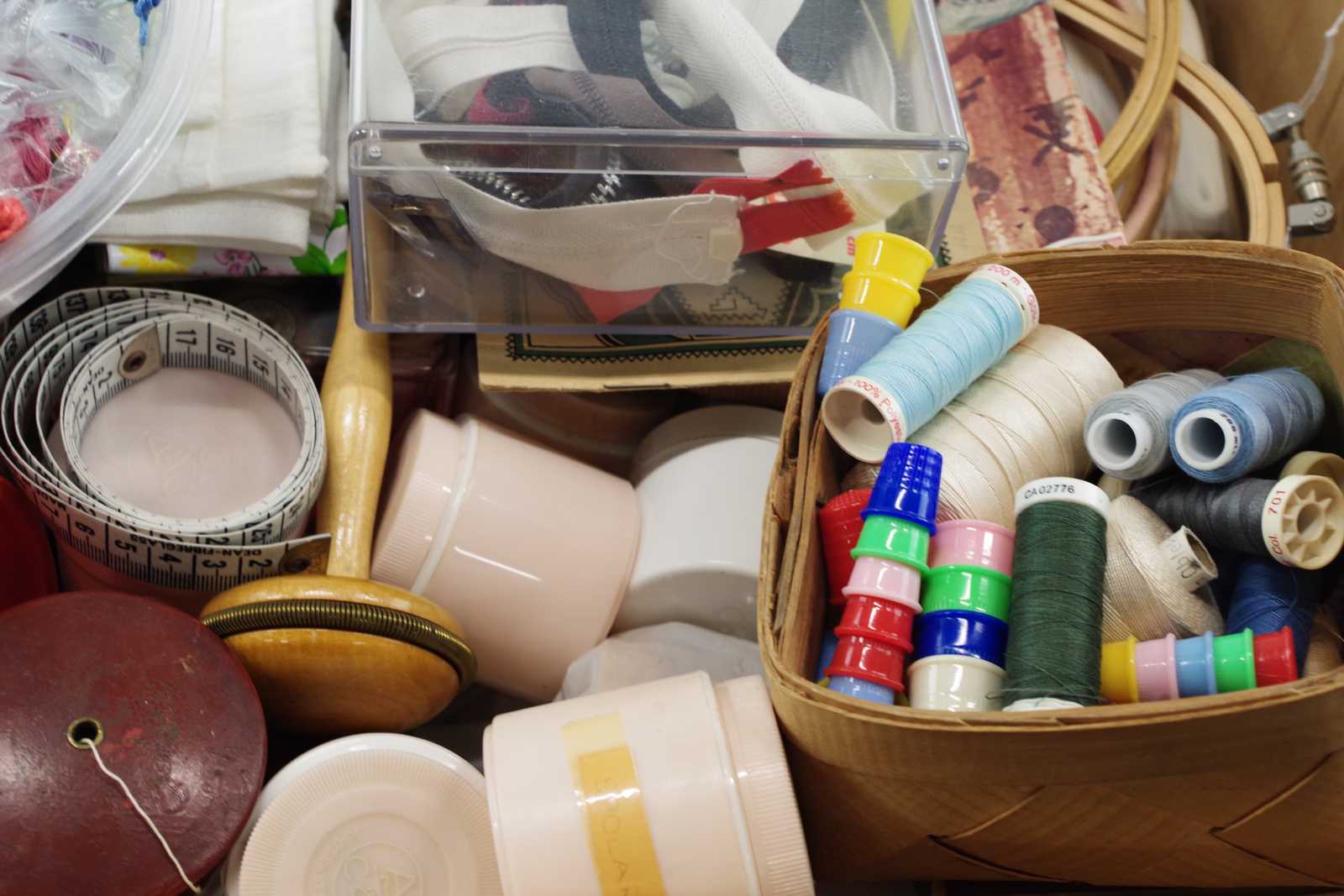 parti SYTILLBEHÖR tråd, knappar, blixtlås, broderiringar mm