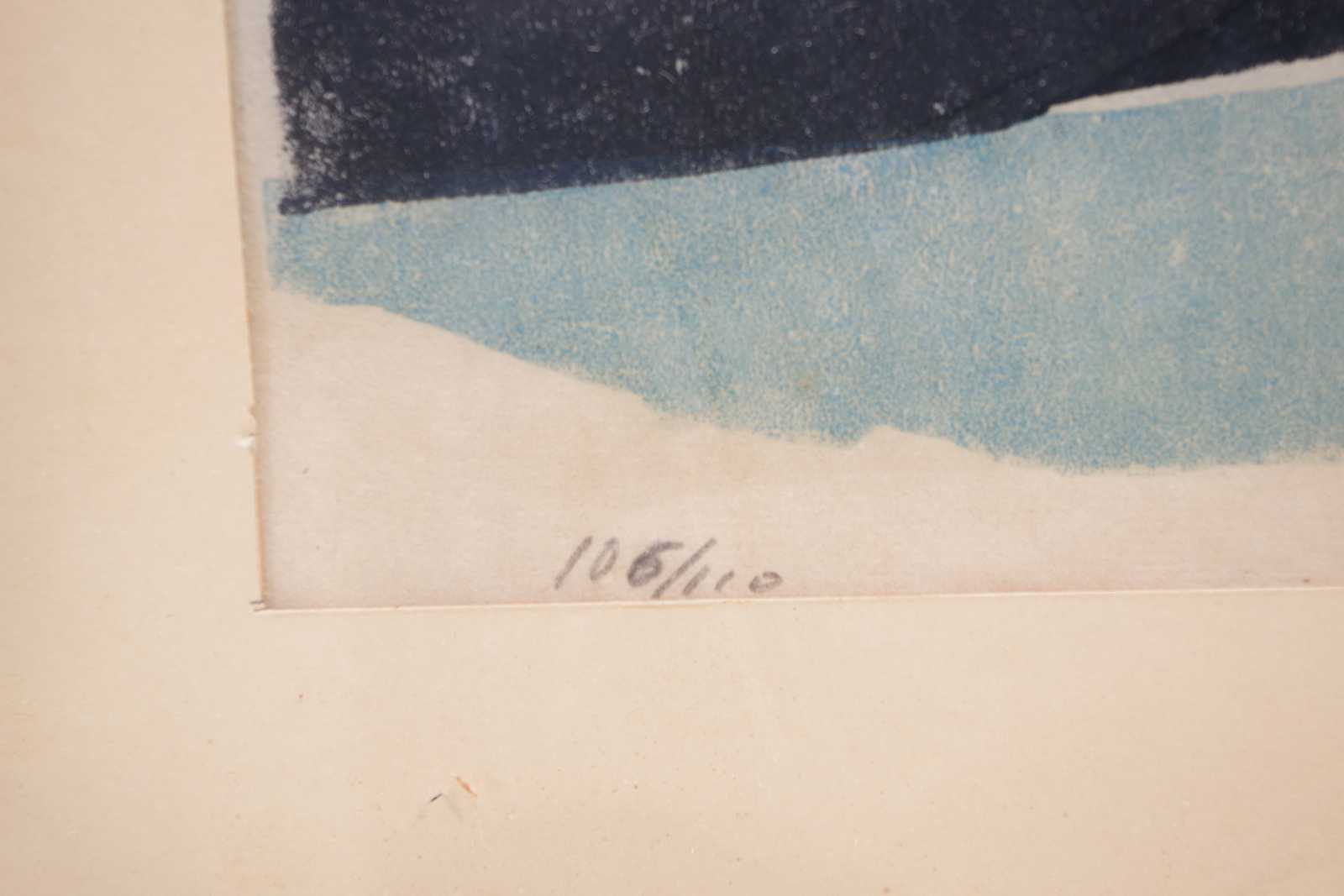Auktioner Konst & Grafik TAVLA, oidentifierad konstnär, träsnitt nr. 105/110, bildytans mått: 30x49cm