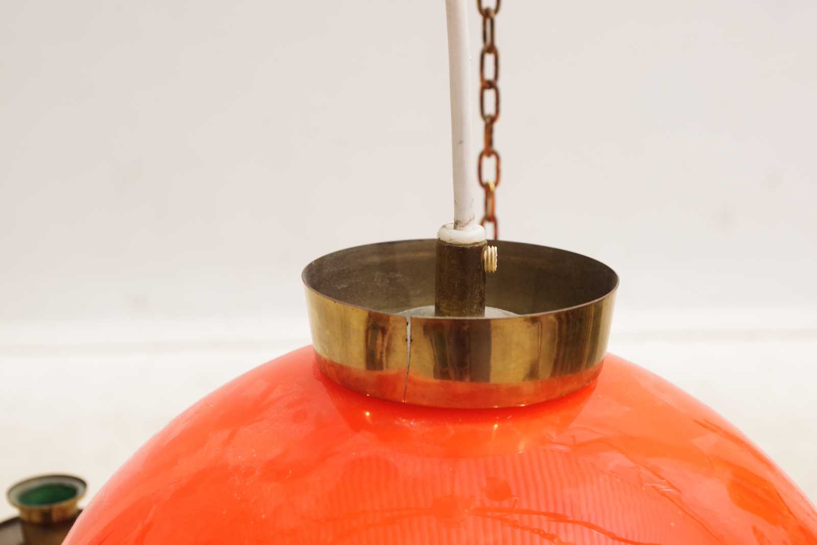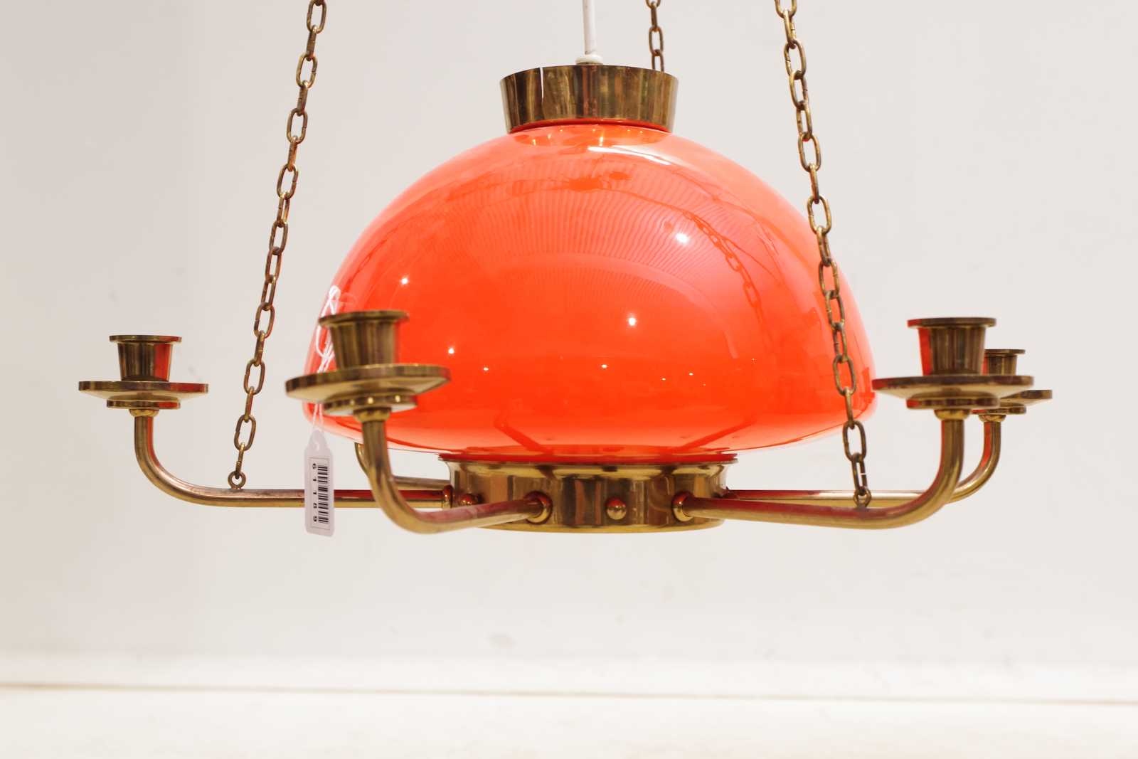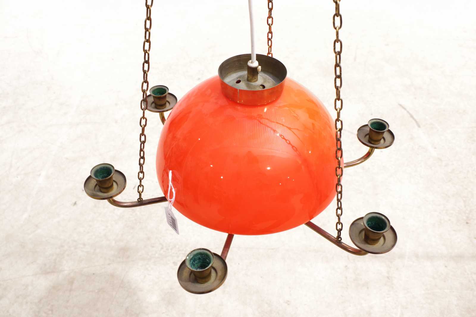 Bilder TAKLAMPA 1900 talets mitt, mässing, glaskupa. D:40cm.