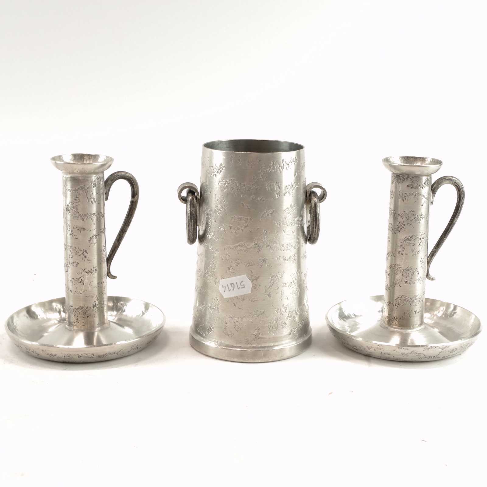 Bilder SKÅL, LJUSSTAKAR H:12 cm& VAS i tenn, Skurdal