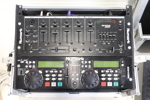 DJ-utrustning, Numark CM100, förstärkare, Harman/Kardon AVR21, samt ett par högtalare.