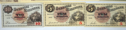Bilder Sedlar, äldre, svenska, ett parti, bl.a EN Krona, 1914.