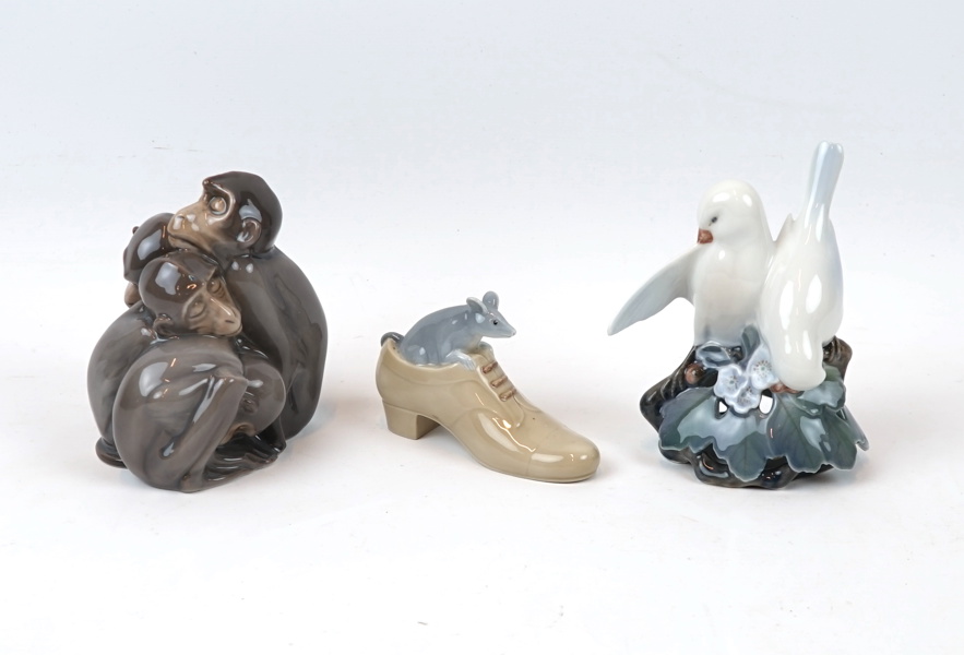 Bilder Figuriner, 3 st, porslin, bl.a Royal Copenhagen.