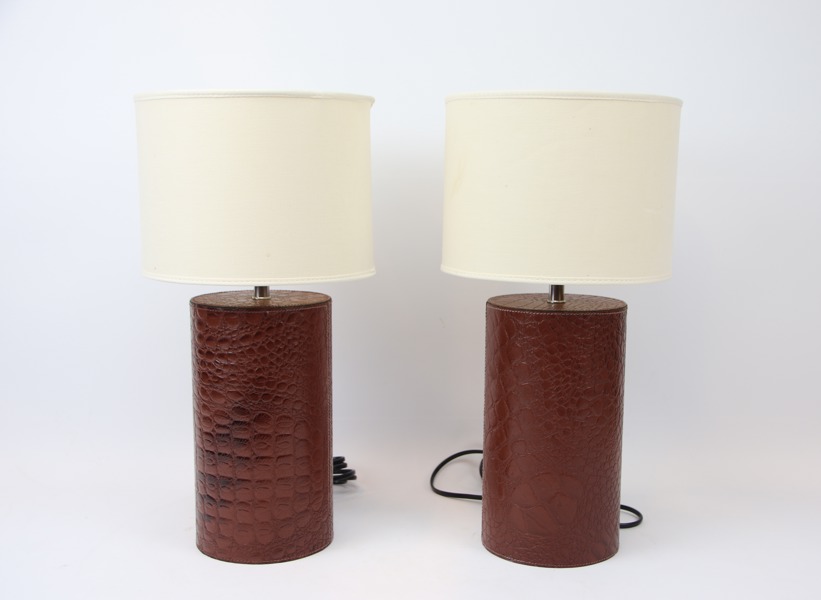 Bordslampor, ett par, präglat skinn, samtida.