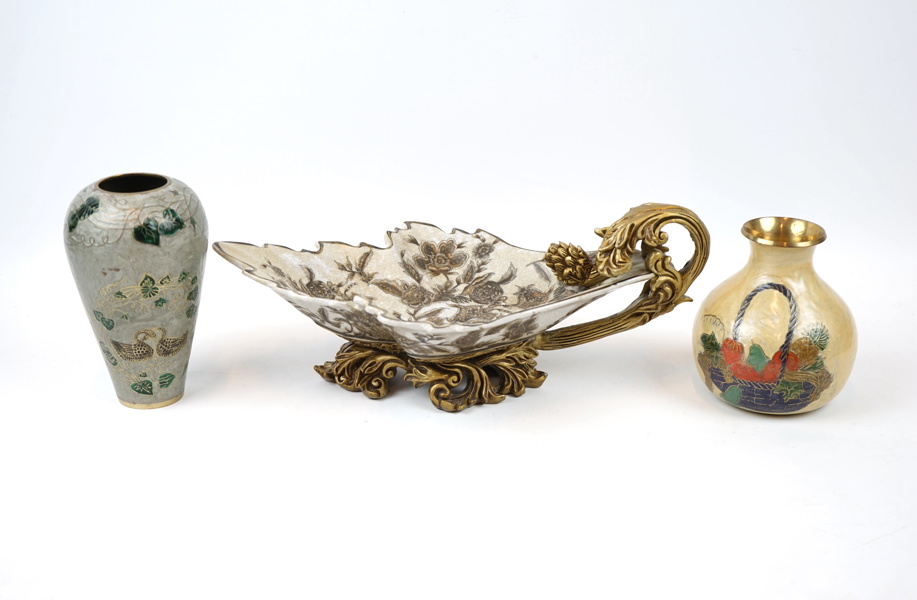 Bilder Vaser och skål, 3 delar, keramik/mässing.
