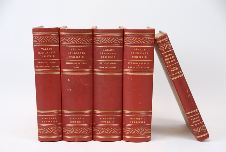 Winston S. Churchill, "Världshändelser och krig", böcker, 5 halvfranska band, Skoglunds Bokförlag, 1942.