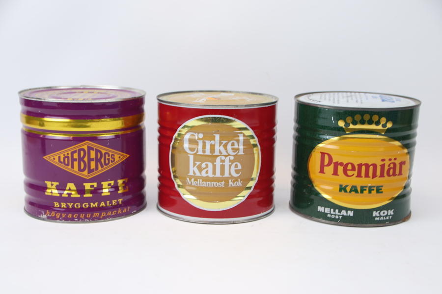 Kaffeburkar, 3 st, oöppnade.
