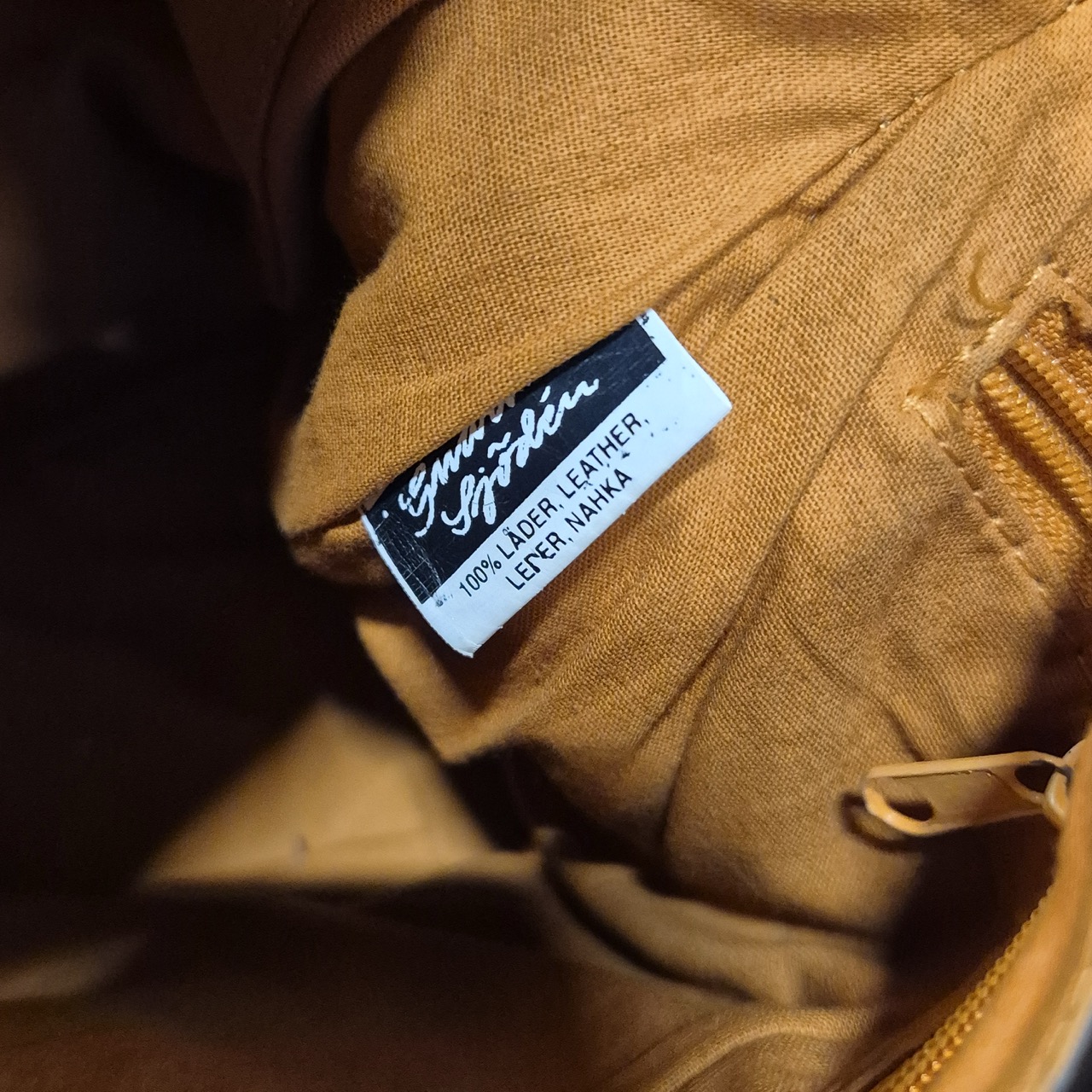 Väska Gudrun Sjödén i skinn 25x25cm. Axelrem. Fint skick men slitet i ett hål på remmen.