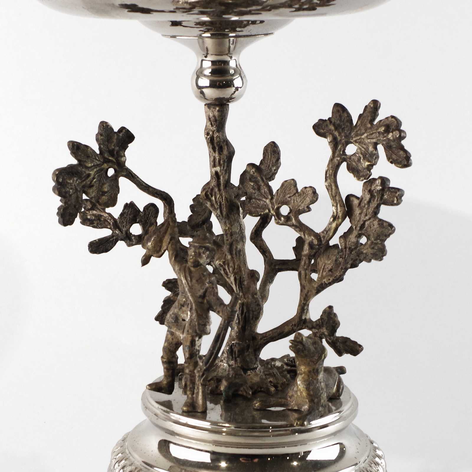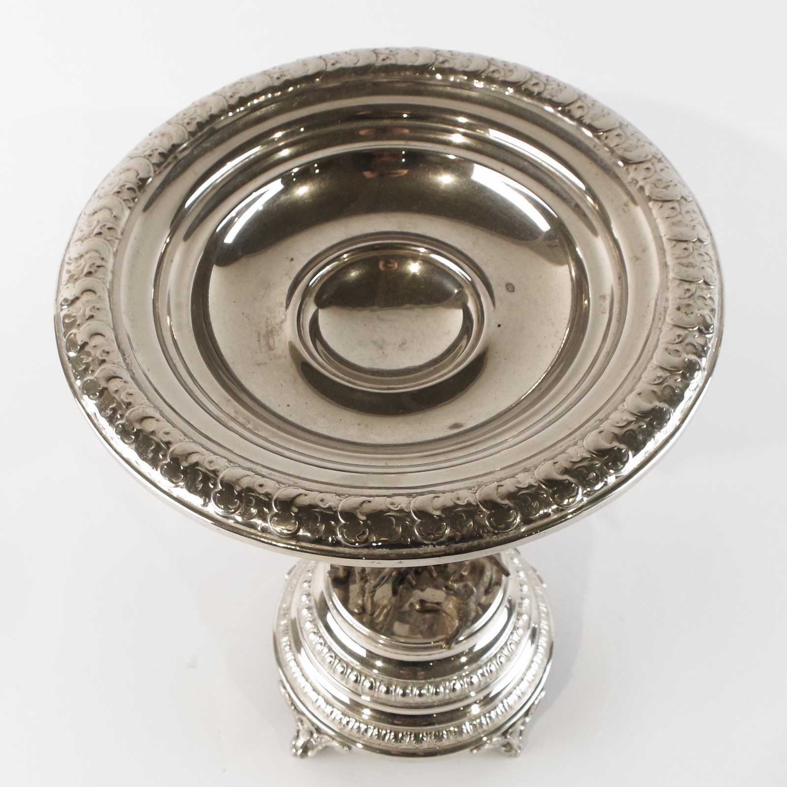 Bilder SKÅL på fot, äldre, vitmetall. H:27cm D:25cm.