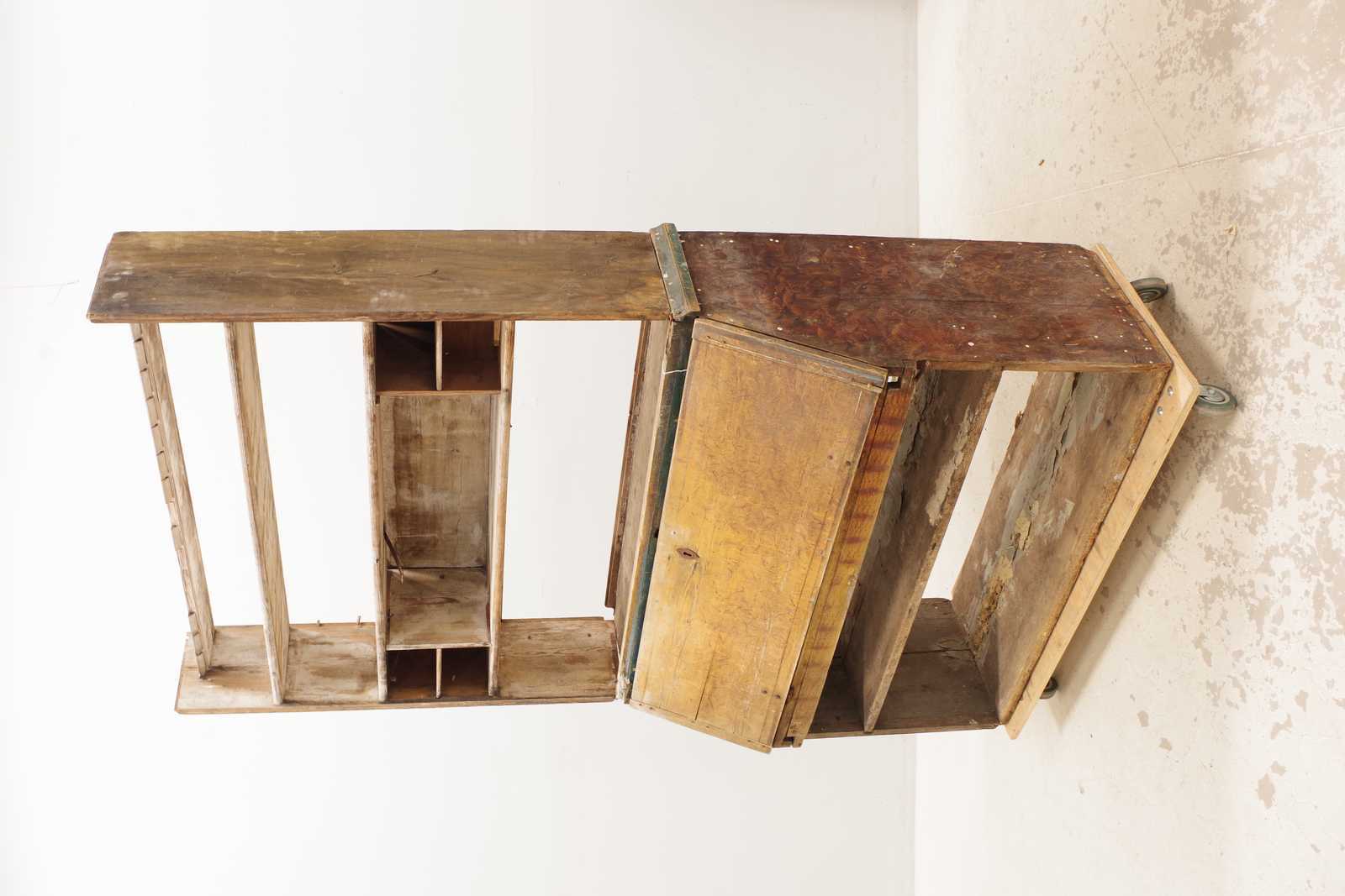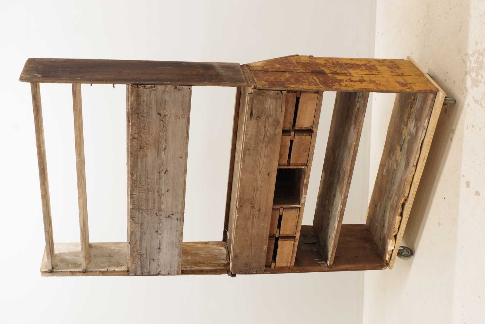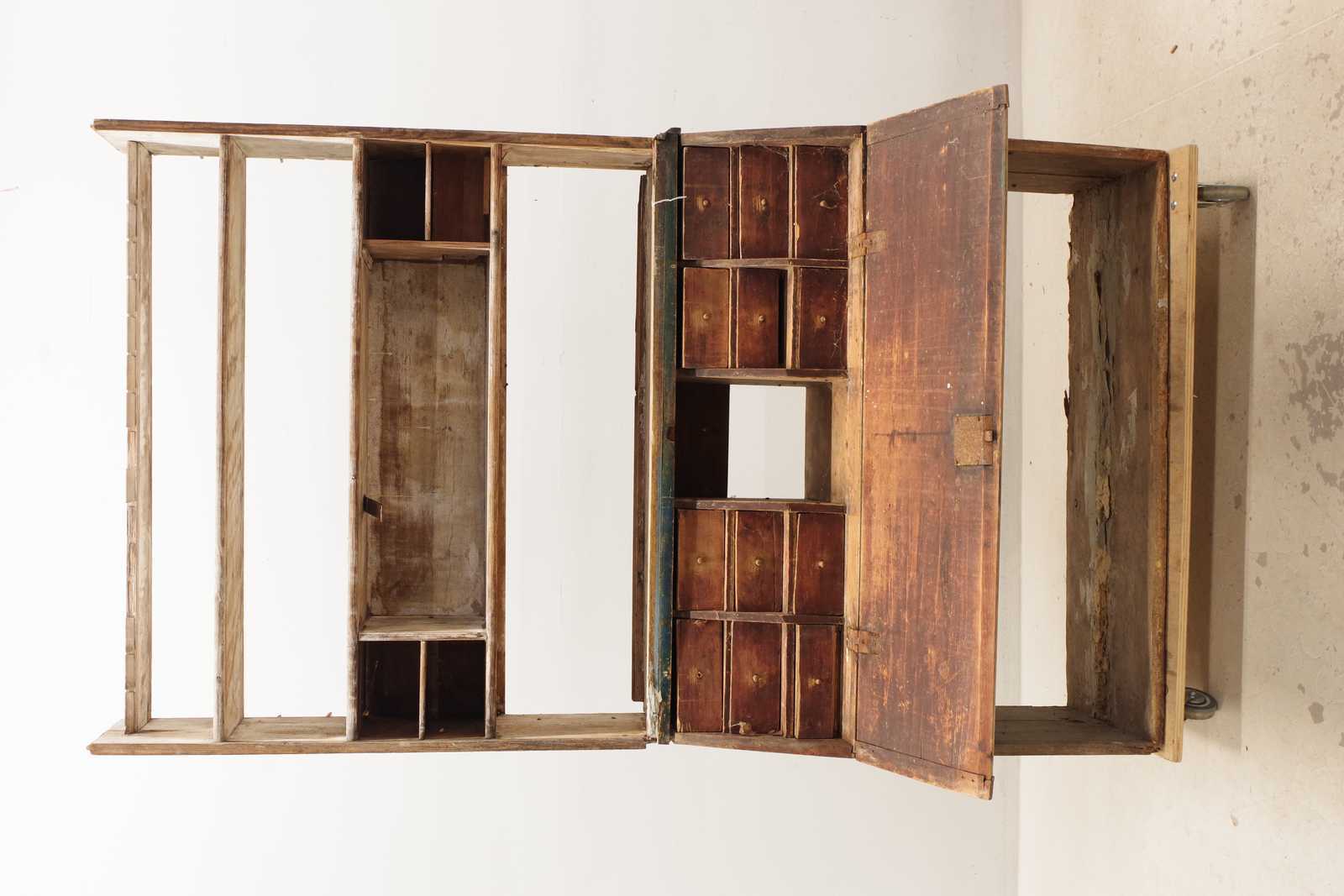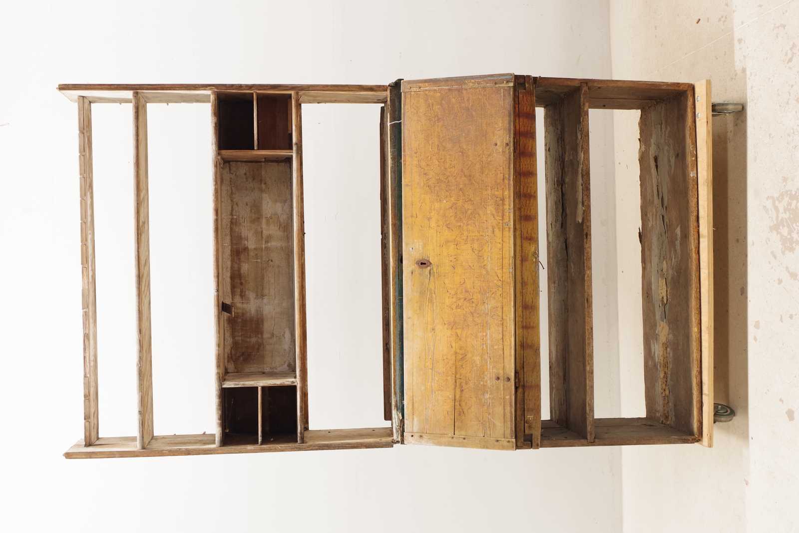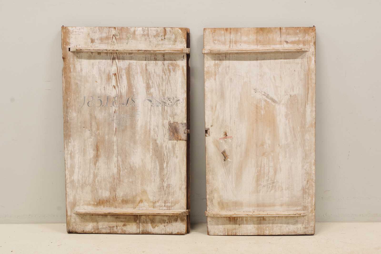 Bilder ALLMOGESKÅP med klaff, 1800-tal. H: ca 215x 120x 48cm, överskåp i gustaviansk stil, daterat 1851 (slitage, skador, lösa delar, delar saknas, alla delar passar inte)