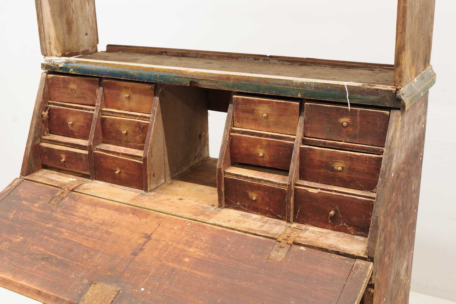 ALLMOGESKÅP med klaff, 1800-tal. H: ca 215x 120x 48cm, överskåp i gustaviansk stil, daterat 1851 (slitage, skador, lösa delar, delar saknas, alla delar passar inte)