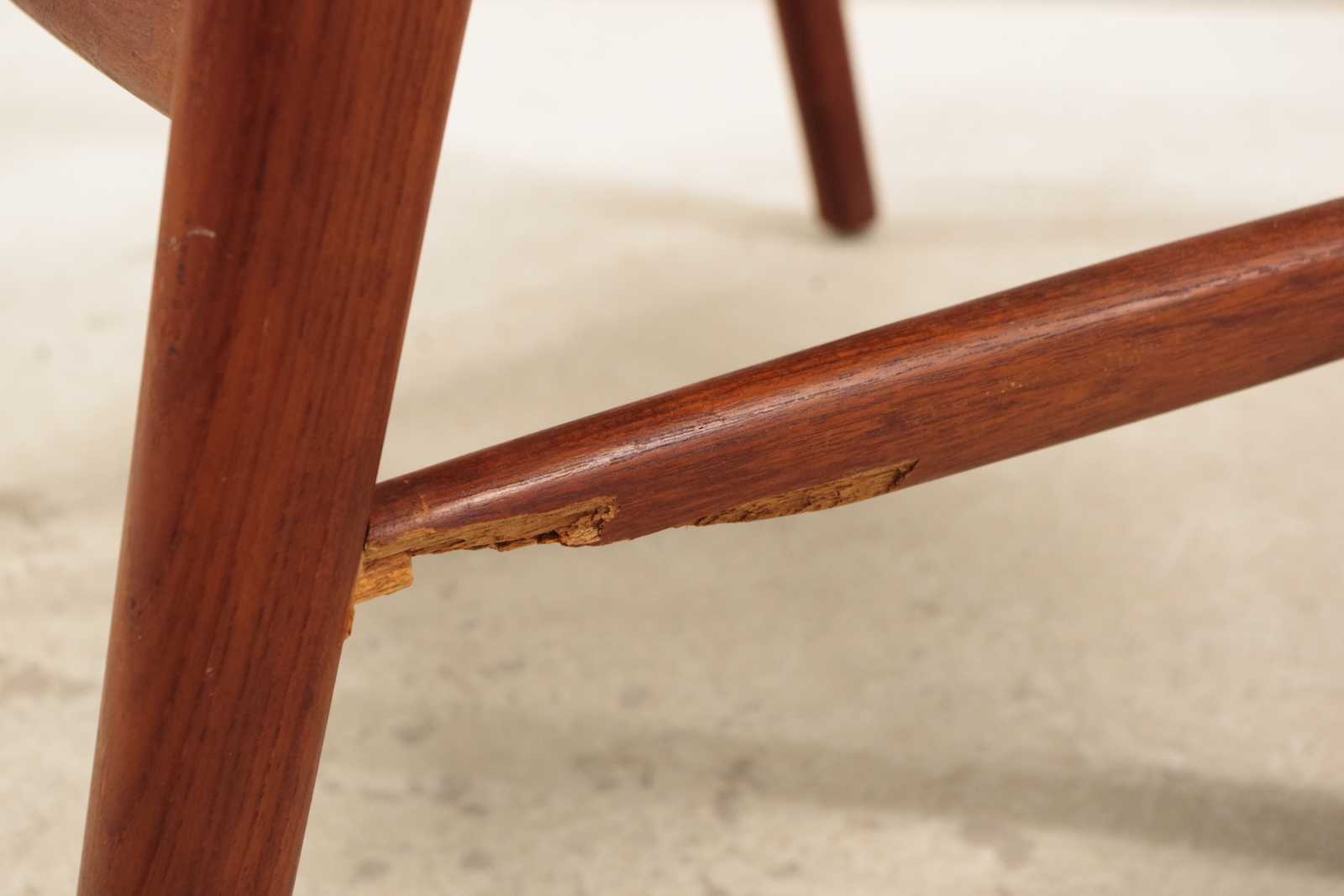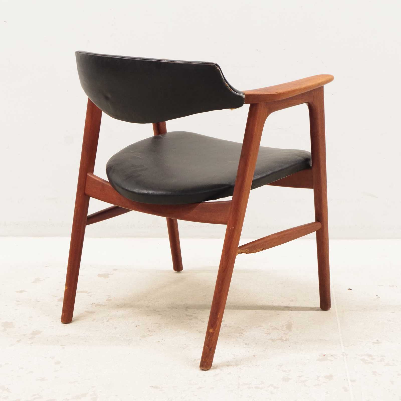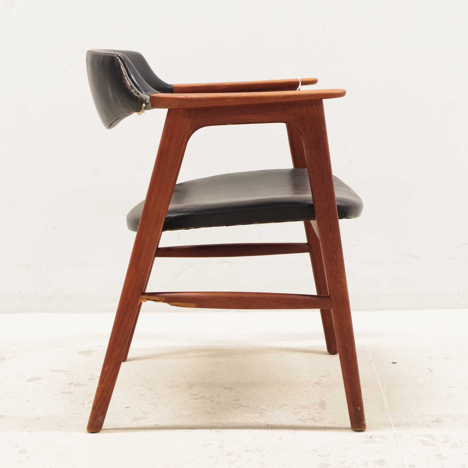 Auktioner KARMSTOL Erik Kirkegaard, Danmark, stomme i teak, klädd i skinn, 1900 talets mitt. (skador på klädsel förekommer, skada i stommen, se extrabild)