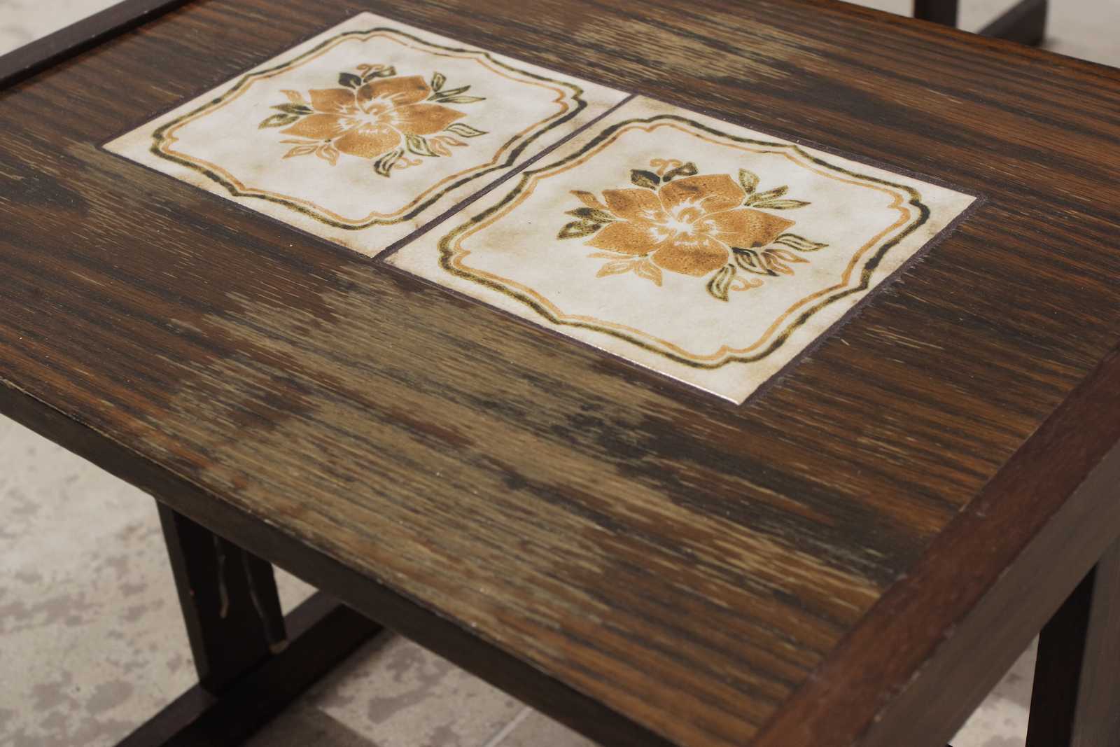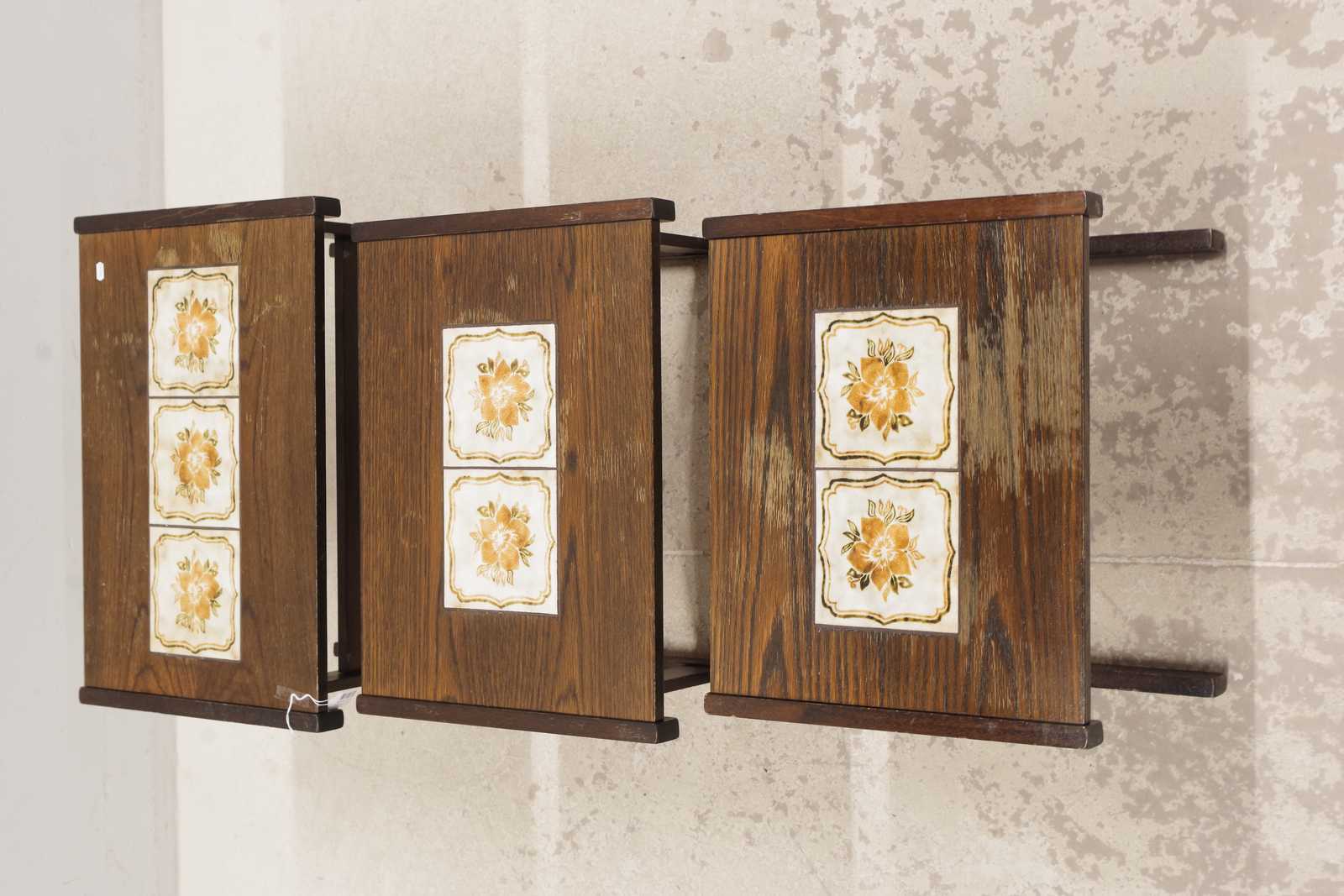 Auktioner SATSBORD 3 delar, kakelplattor, 1900 talets andra hälft. H:50x 60x 40cm (bruksslitage, fläckar)