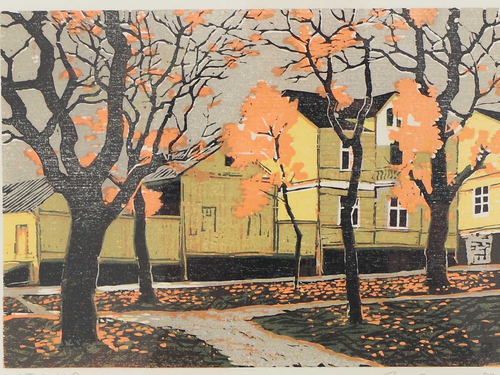 Auktioner Konst & Grafik TAVLA Thore Andersson, "Höst vid Esplanaden" signerad, daterad -80 & numrerad 43/300. 60x47cm rammått
