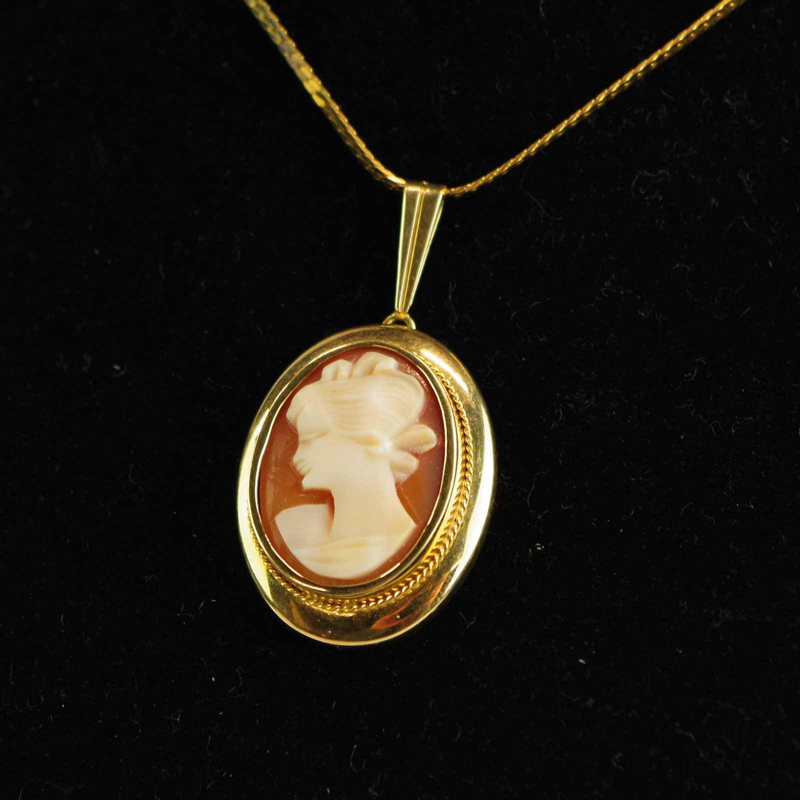 HALSKEDJA guld 14K & HÄNGE camé/guld 14K Total V:6 g