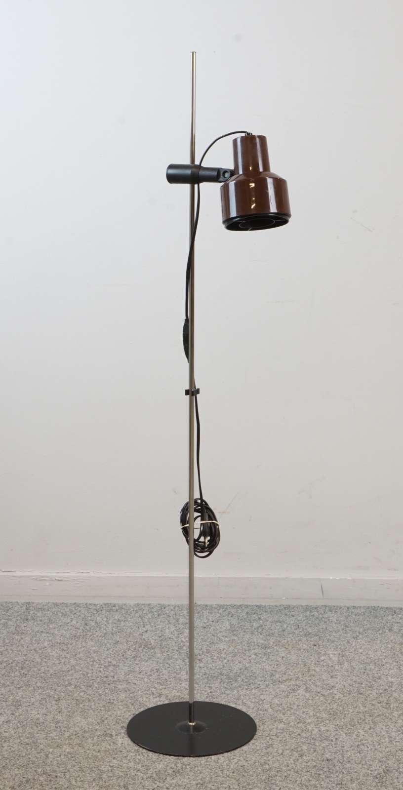 Auktioner Bordslampa Harald Notini (1879-1959), Sverige. Två ljusarmar, ställbar, svartlackaderad stomme och skärmar, krom / trä / plåt. Höjd: 43 cm. Diameter: 19 (fot)