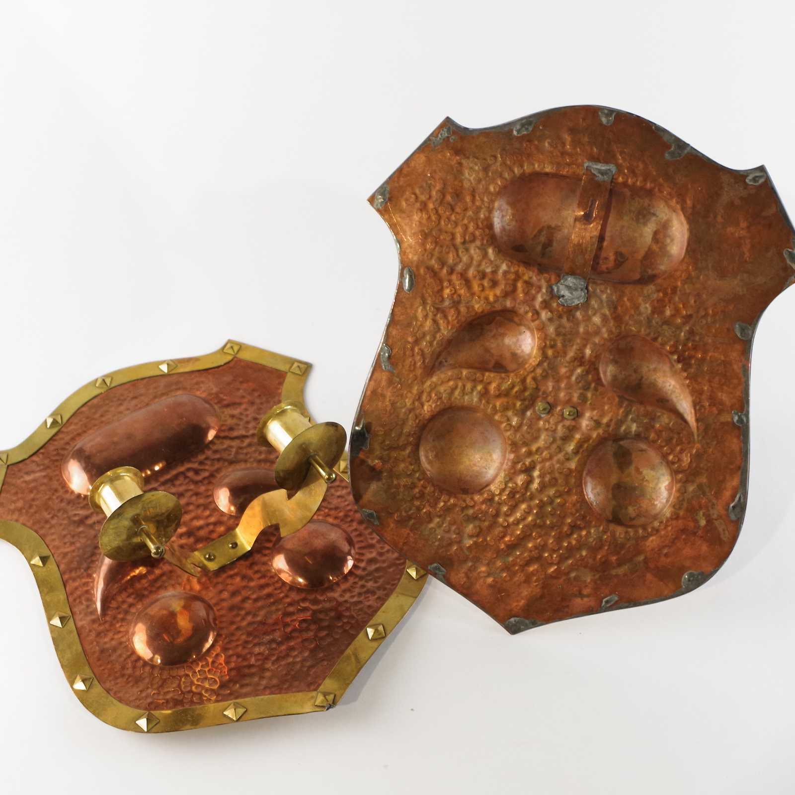 LAMPETTER 1 par äldre, koppar/mässing. 32x27cm.