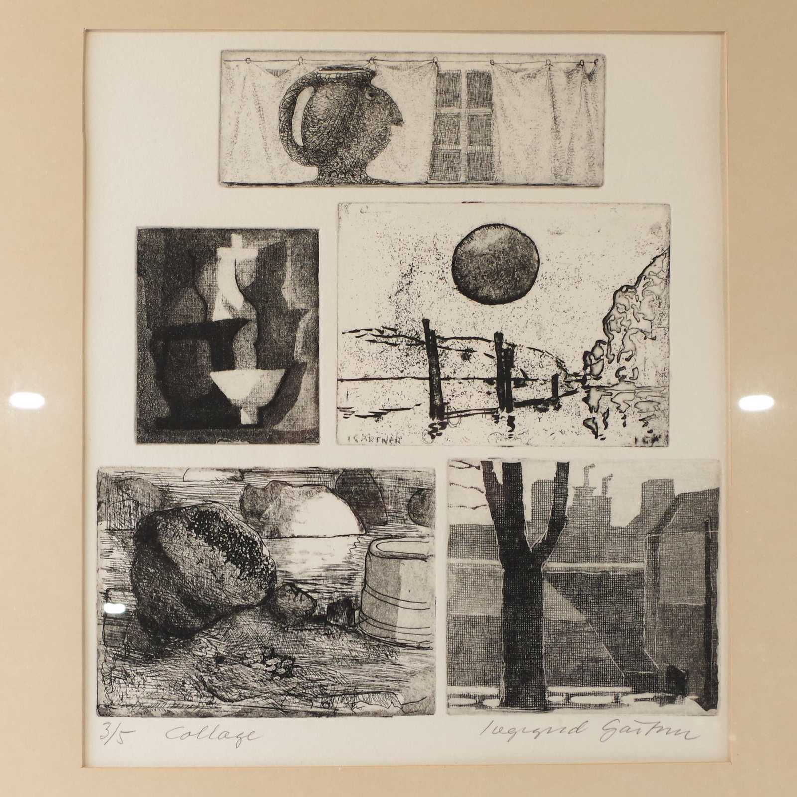 TAVLA, Ingegerd Gärtner, 3/5 Collage, Etsningar. Bildmått: 25x29cm.