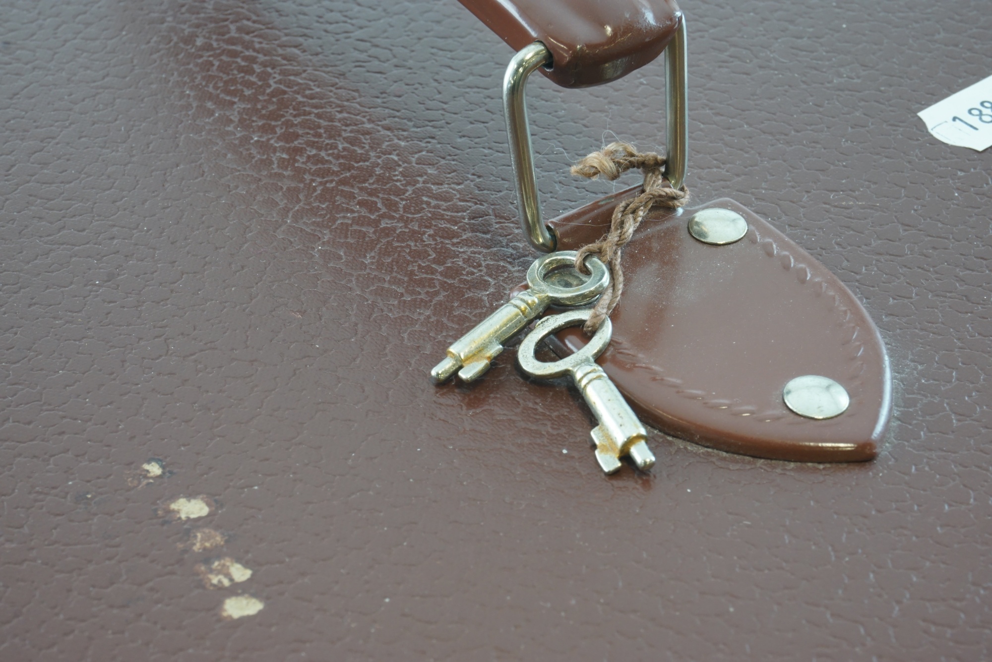 Bilder Retro Väska med Lås Samt Glas Flaskor.