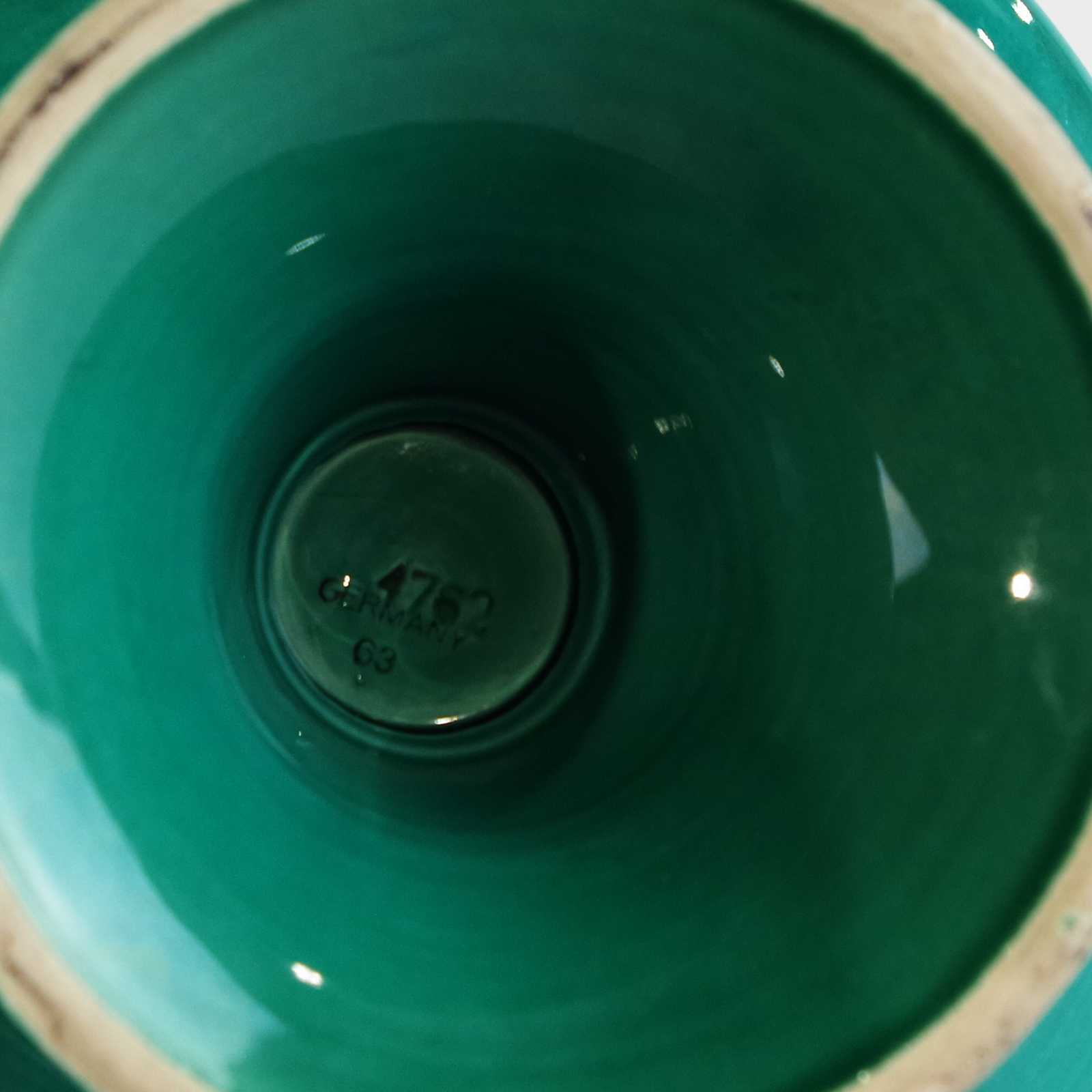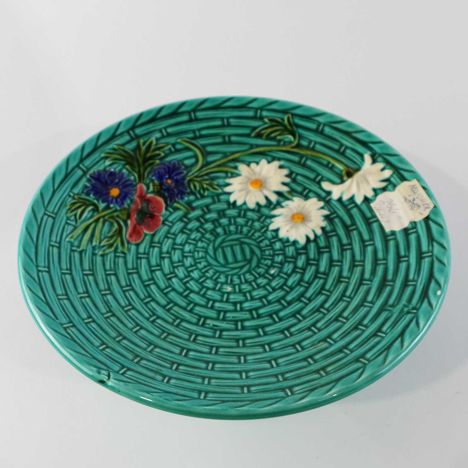 FAT på fot majolika. D:25cm. (liten glasyrbyt saknas)