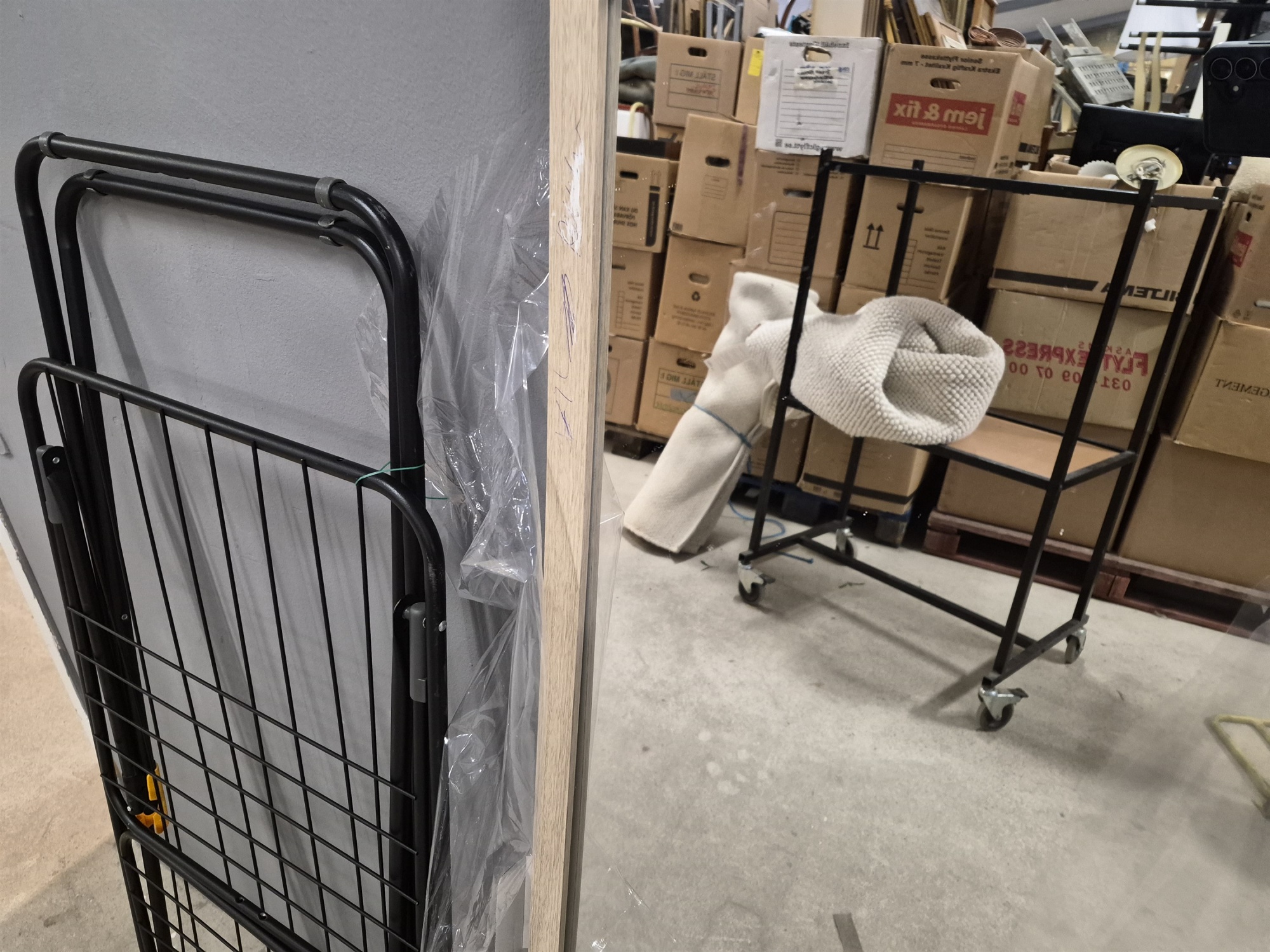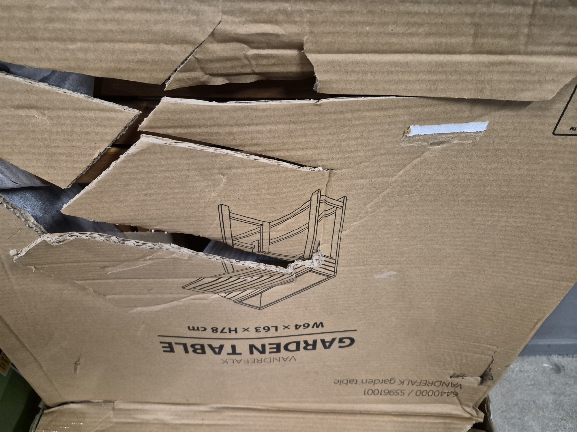Spegel med bläckkladd, trädgårdsbord & spridarvagn, tvättställning högsta 150 cm