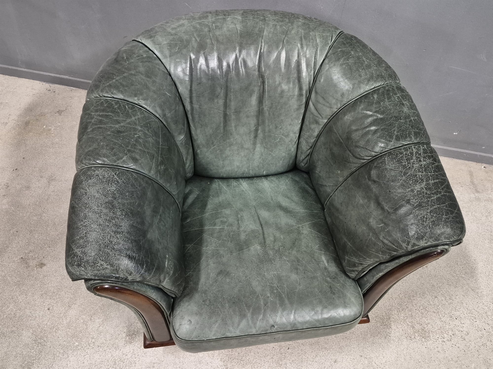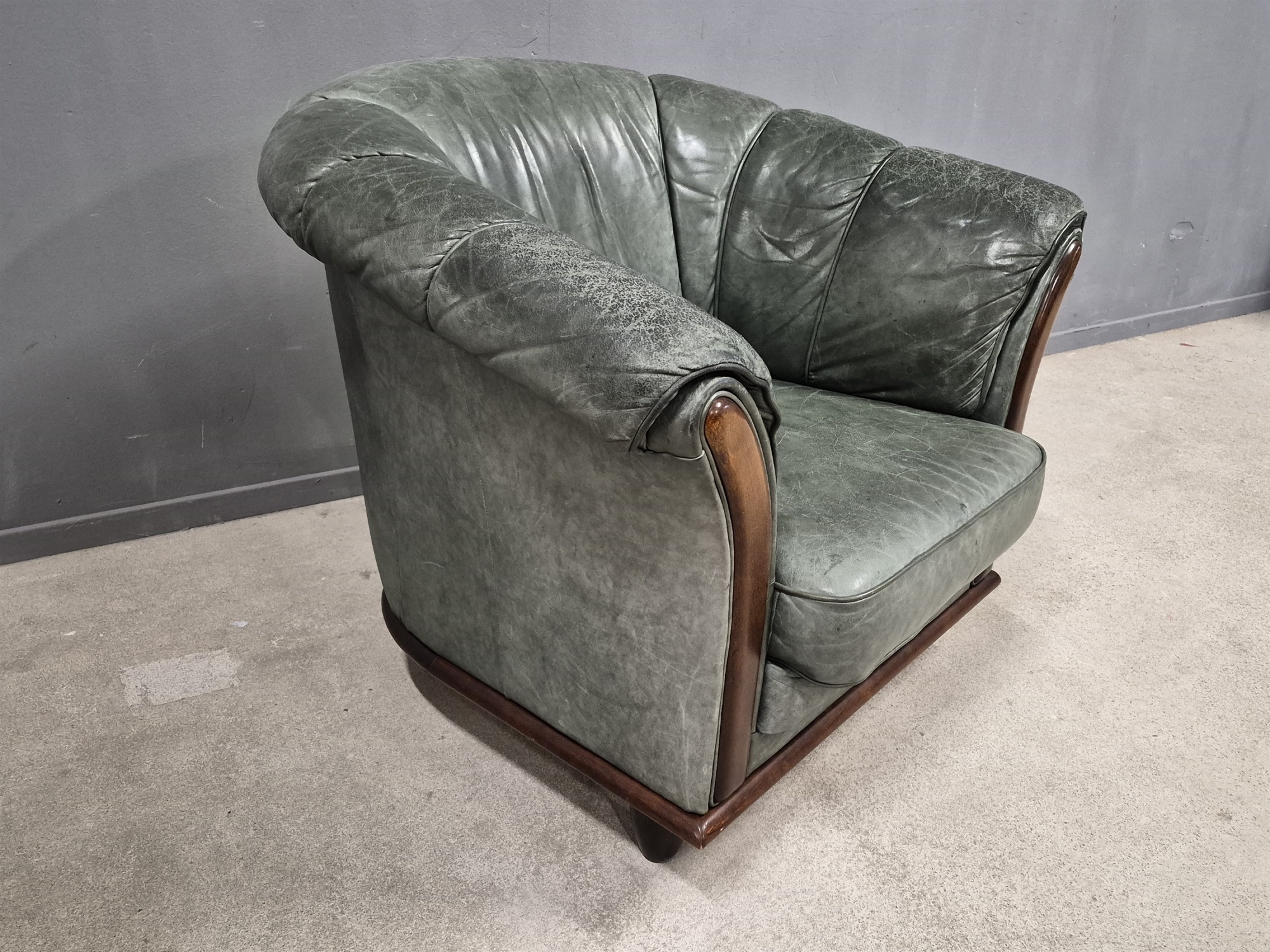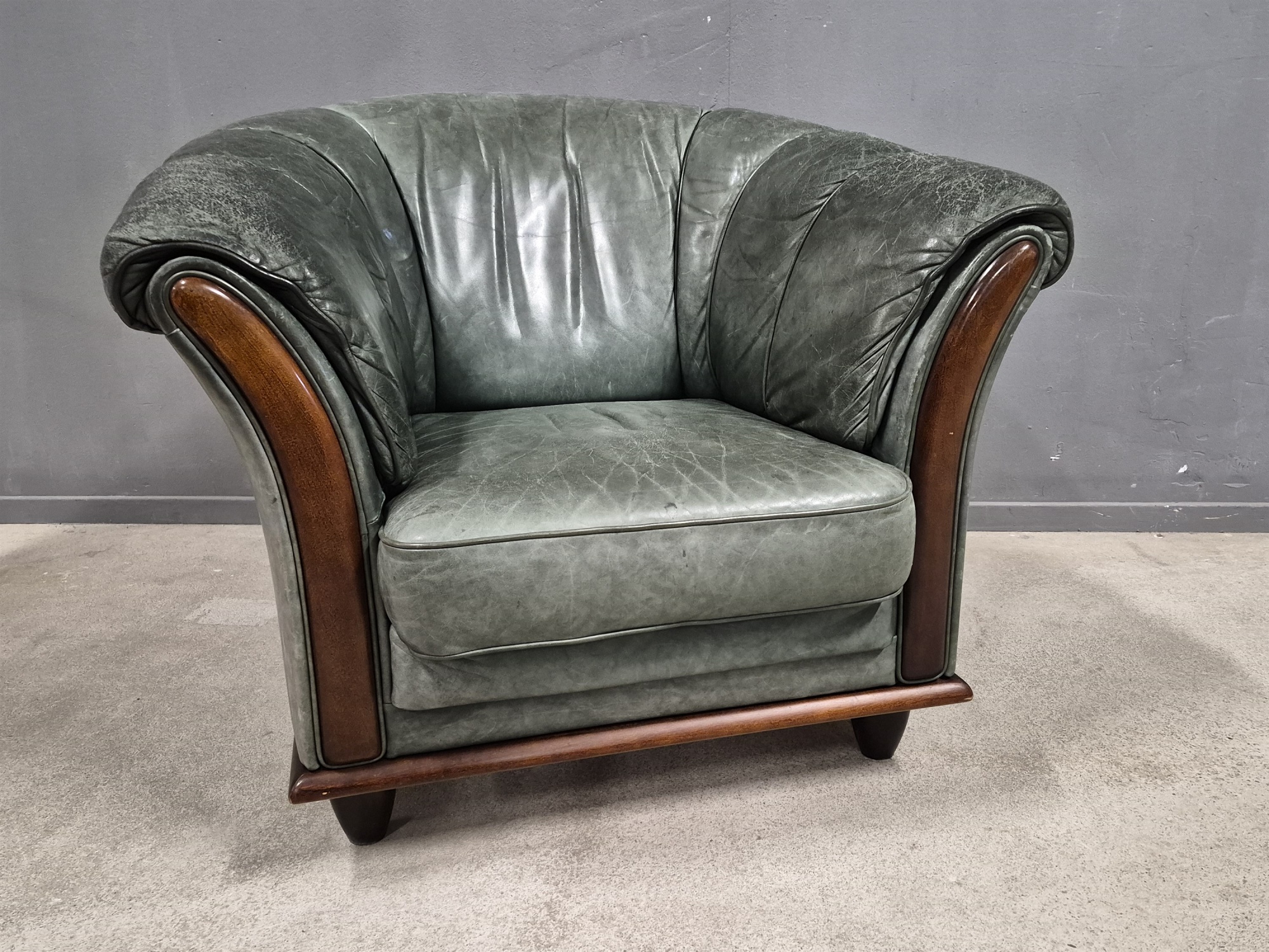 Bilder Klubbfåtölj skinn med trädetaljer, höjd 80 cm