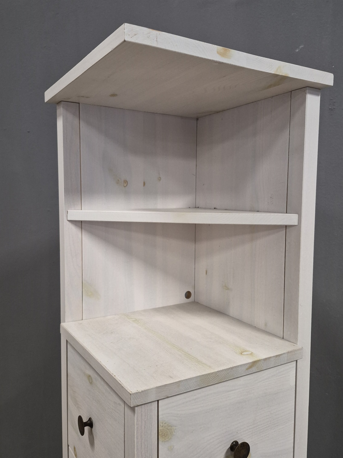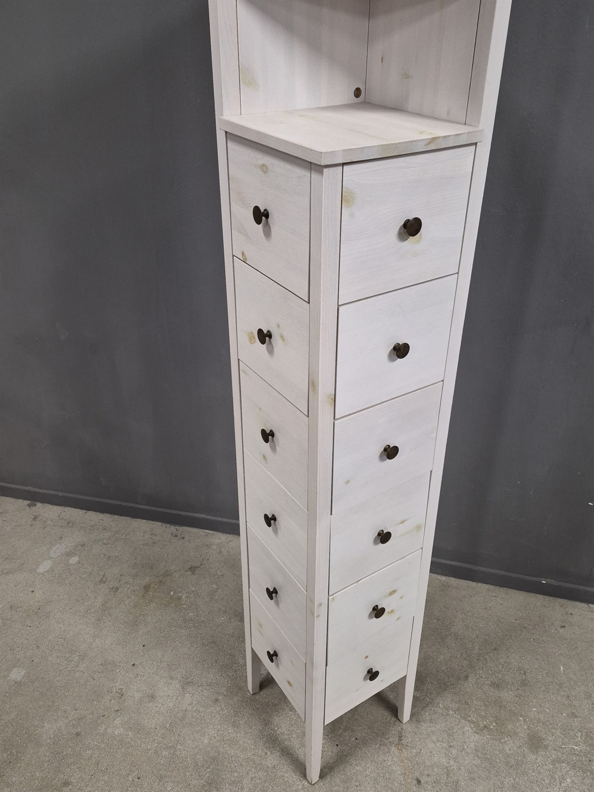 Hörnbyrå med hyllplan, betsad furu, höjd 183 cm, djup & bredd 31 cm