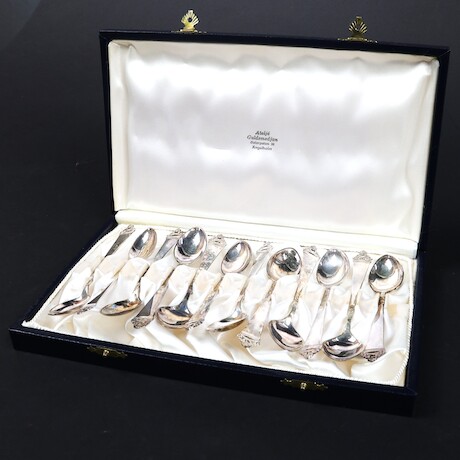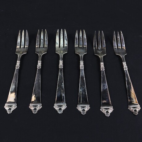 Auktioner Guld, Silver & Smycken Kaffeskedar 12 st + tårtgafflar 6 st, silver, Norge, 830/1000, vikt 245 gram