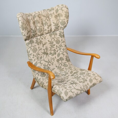 Fåtölj, 1940-50-tal, trä och textil