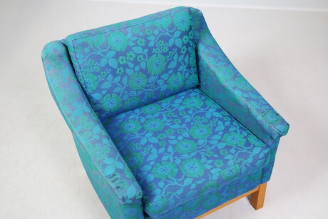 Fåtölj 1960-tal, textil & trä