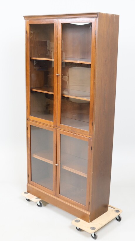 Vitrinskåp, 1970-tal, betsad ek, bredd 100 cm, djup 34 cm, höjd 210 cm