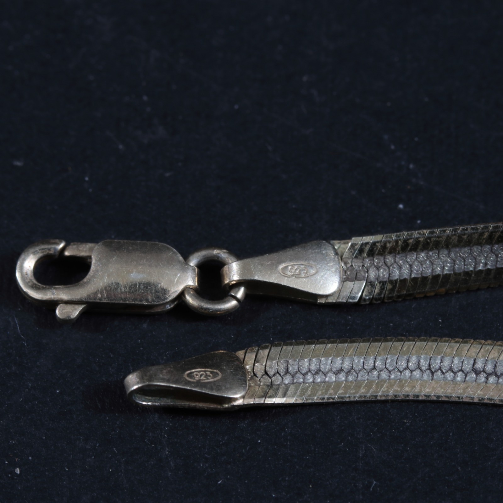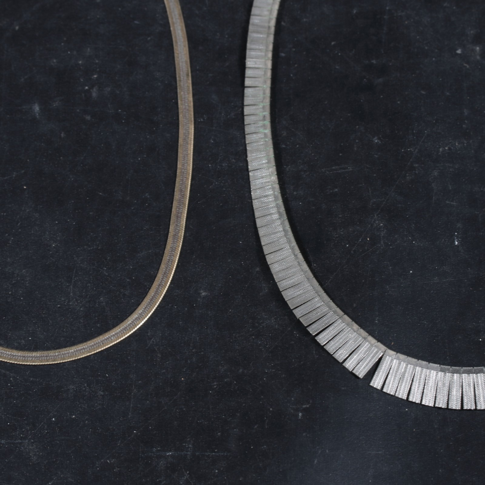 2 stycken, kontrollerat silver, 1st förgyllt, 1st bredd 4 mm, 1st bredd 8-13 mm, längd 43-45 cm, vikt 36 gram. (vån3)