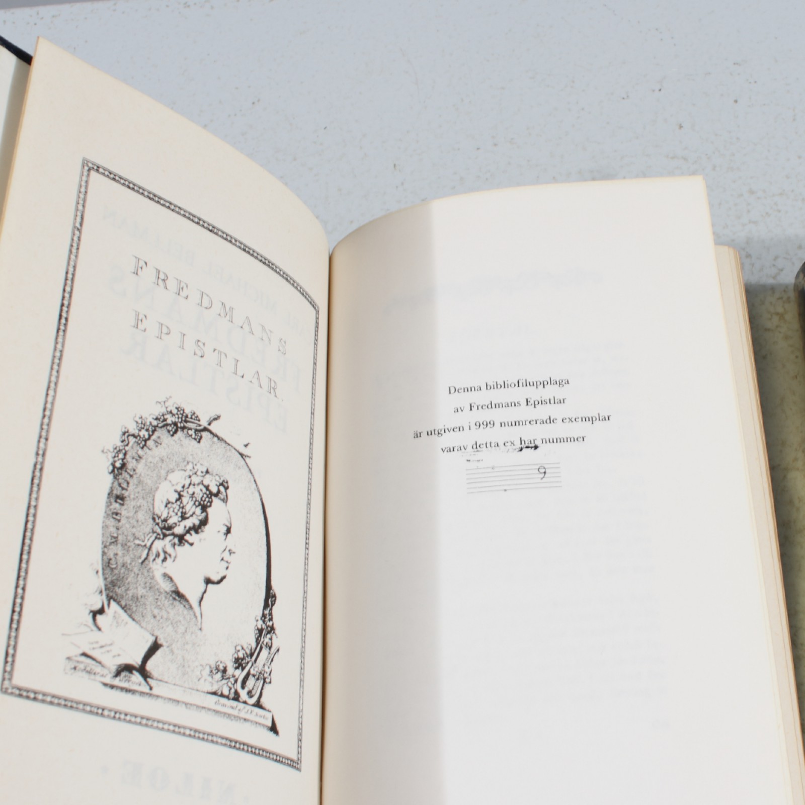 2 stycken, "Fredmans epistlar" samt "Fredmans sånger", numrerade bibliofilupplagor, dessa nr 9/999. (vån3)