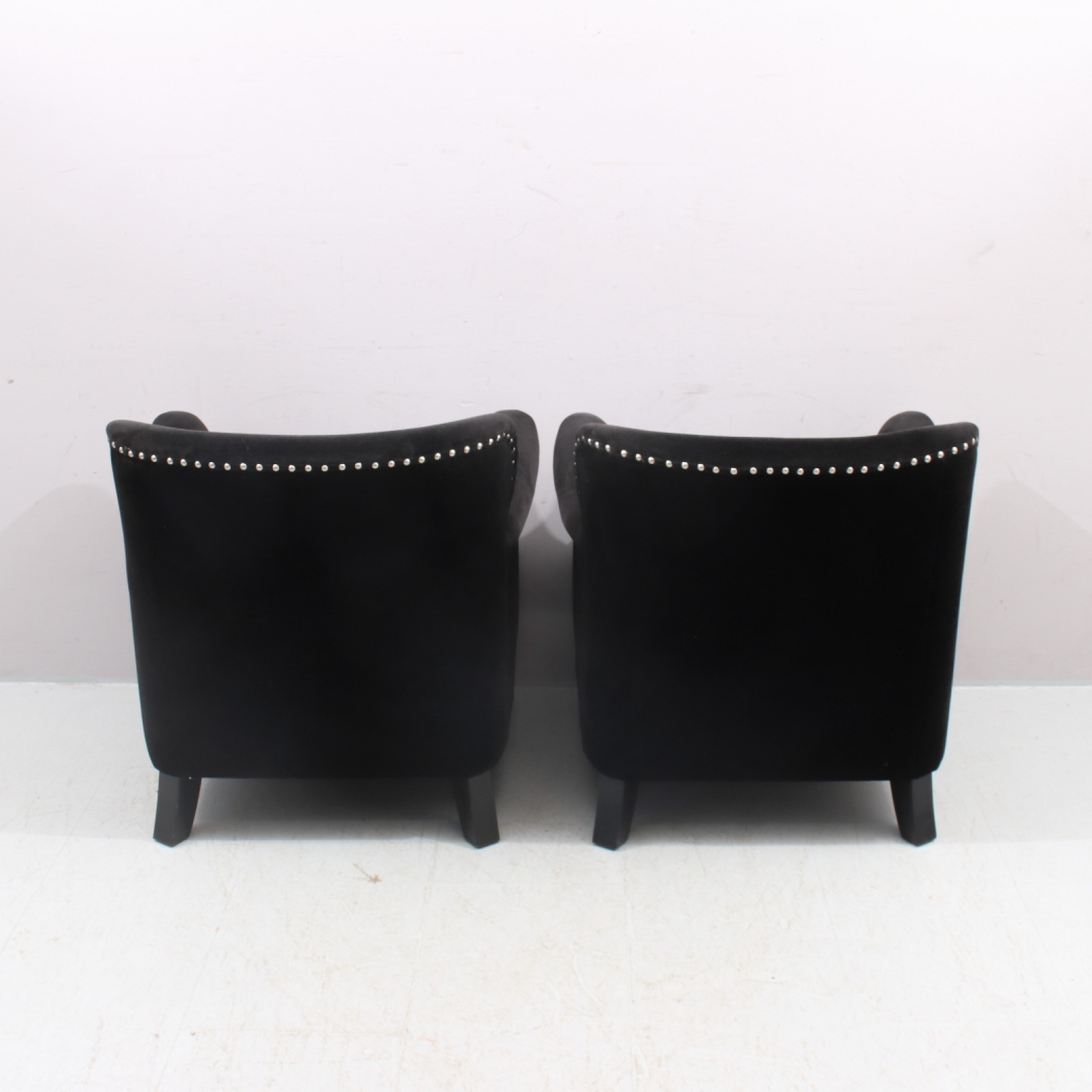 2 stycken ( 1 par), Tygklädsel sammet, modern tillverkning, mindre bruksslitage dock längst fram på armstöd med bruksslitage, Rh.75, B.75, Sh.43 cm. (vån1)