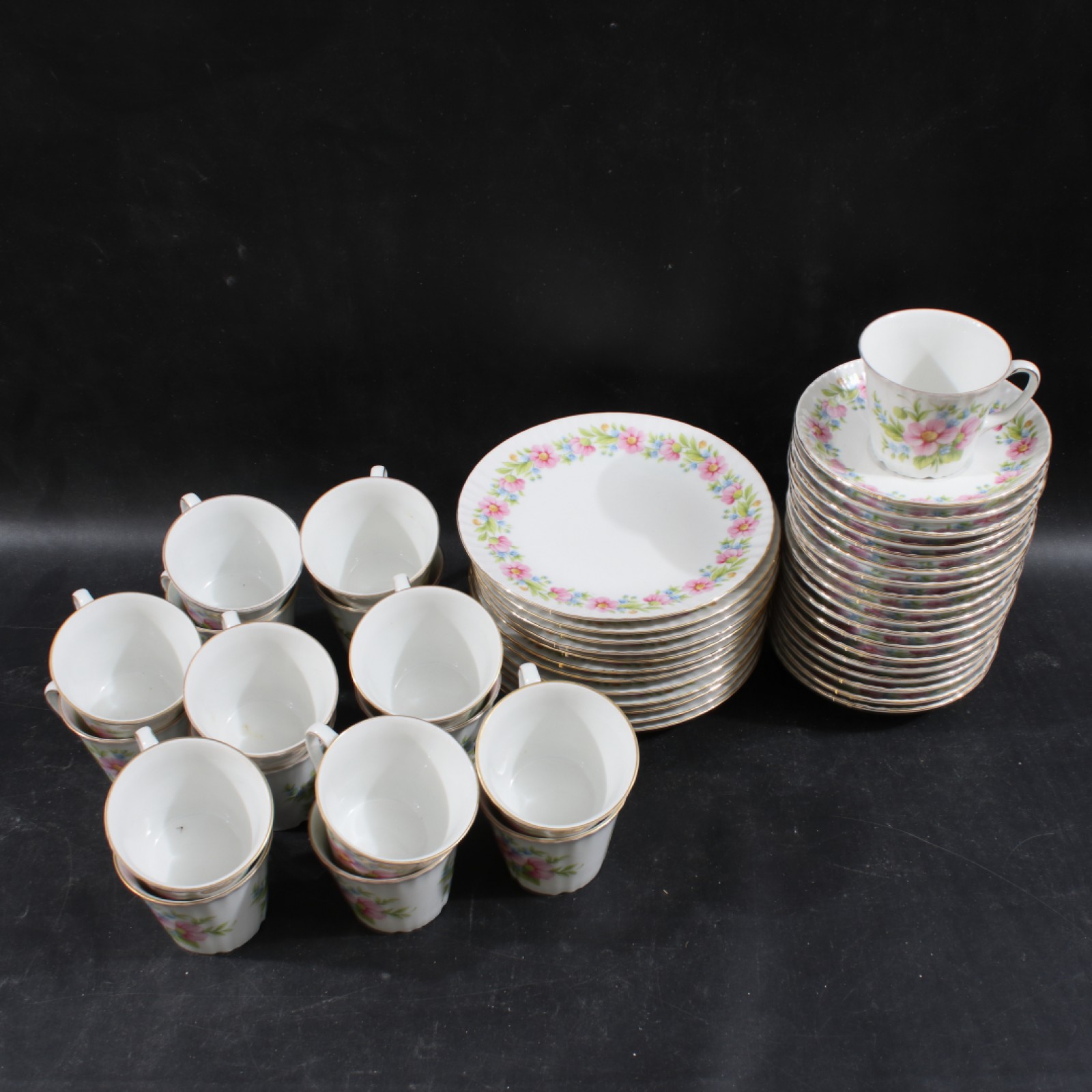 47 delar, 17st kaffekoppar, 18st kaffefat samt 12st assietter. (vån3)